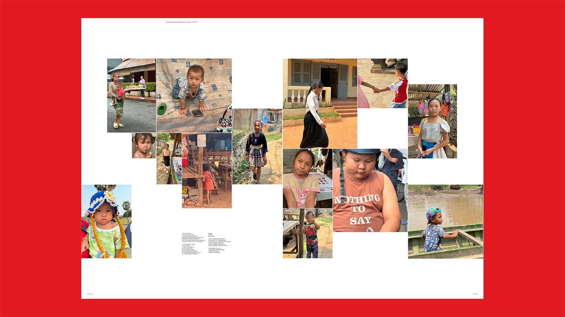 Photography drives the project’s visual language. Shot instinctively on an iPhone, the images are treated not as documentary material but as poetic fragments mirroring the way memory surfaces and dissolves. Faces, gestures, bodies, and landscapes are combined with Vietnamese poetry, excerpts from local texts, and pieces of written testimony. Through the interplay of image and word, Metaphorm builds a collage of impressions: a world both unfamiliar and strangely intimate.