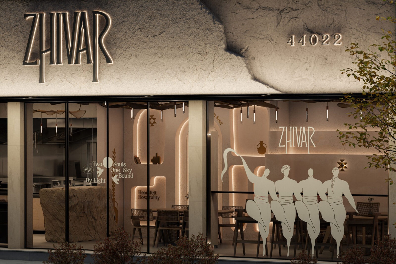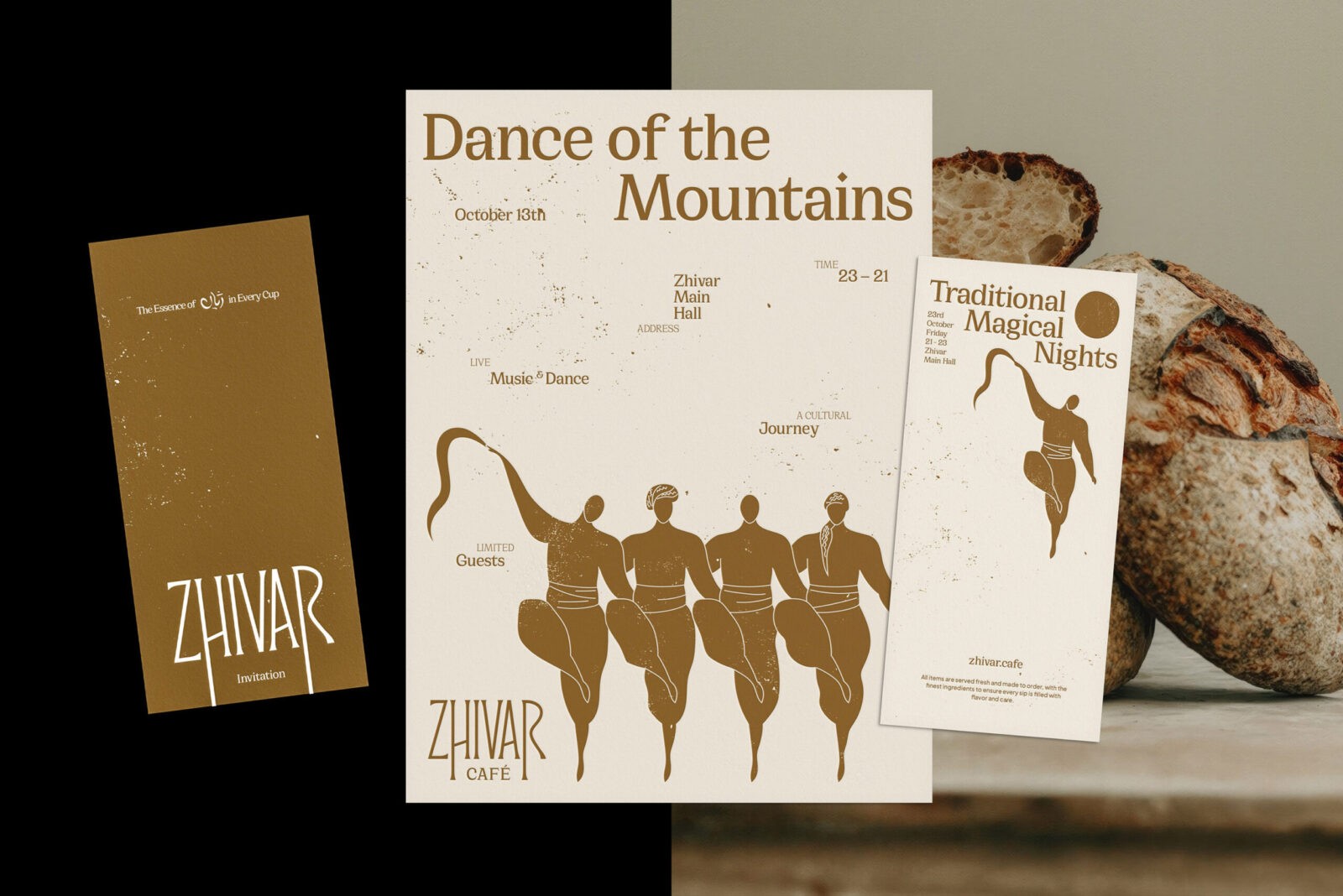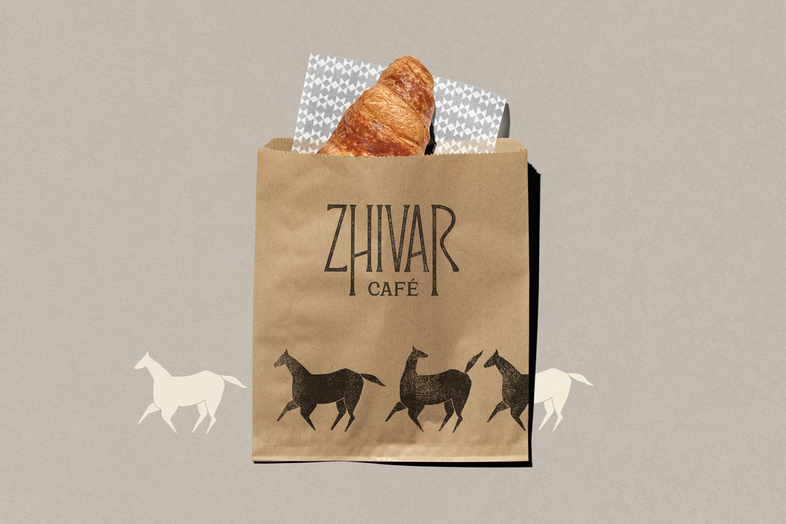The interior design of the café was developed in alignment with the visual identity as well. With the cohesive aesthetic formed through branding and spatial design, Zhivar quickly became a popular and distinctive gathering place; one that not only provided a pleasant experience but also invited visitors to connect with the culture of the owners. In essence, Zhivar was not only a brand identity design; it was the integration of an entire value system, beliefs, traditions, and the historical memory of a culture into a core identity. Its design embraces eclecticism, combining diverse cultural references with contemporary artistic expression, making Zhivar both profoundly cultural and strikingly modern.