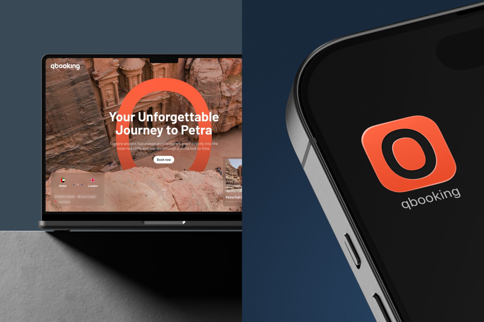 Qbooking is a travel agency operating between Iran and the UAE, offering a wide range of flight services and curated travel experiences across multiple destinations. When developing its visual identity, our challenge was to design a visual language that could function seamlessly across digital platforms, promotional materials, and the brand’s growing ecosystem. We needed forms that were both distinctive and adaptable; elements that could evolve, scale, and reappear in new contexts.