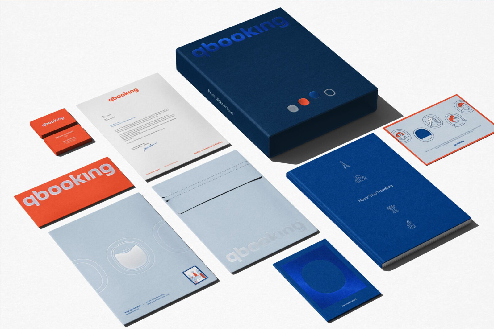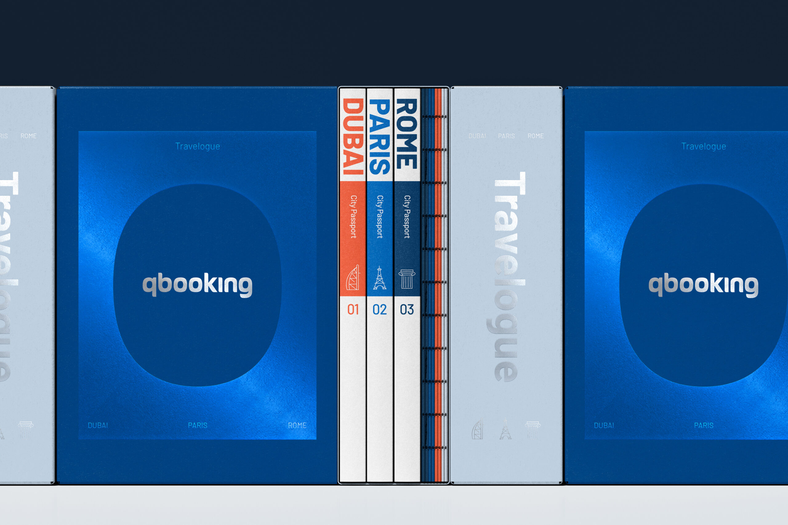 Qbooking was, in every sense, a large-scale project. Beyond the core identity, we designed the interior environment of the UAE office, as well as B2B and B2C interfaces for the brand’s digital platforms. The result is a cohesive identity that extends beautifully across brand merchandise.