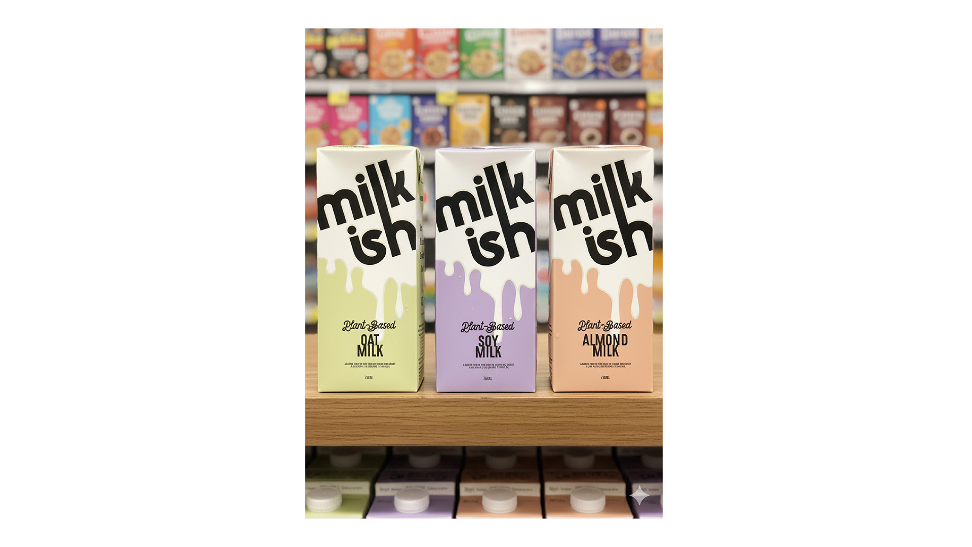 The result is a design language that balances disruption with accessibility, making Milkish not just another plant-based product, but a category standout. It delivers powerful shelf impact, unmistakable brand recall, and a visual personality that cannot be overlooked. By rethinking how plant-based milk can look and feel, we shaped Milkish into a brand that is instantly recognisable, effortlessly modern, and deeply memorable—bold, playful, and impossible to forget.