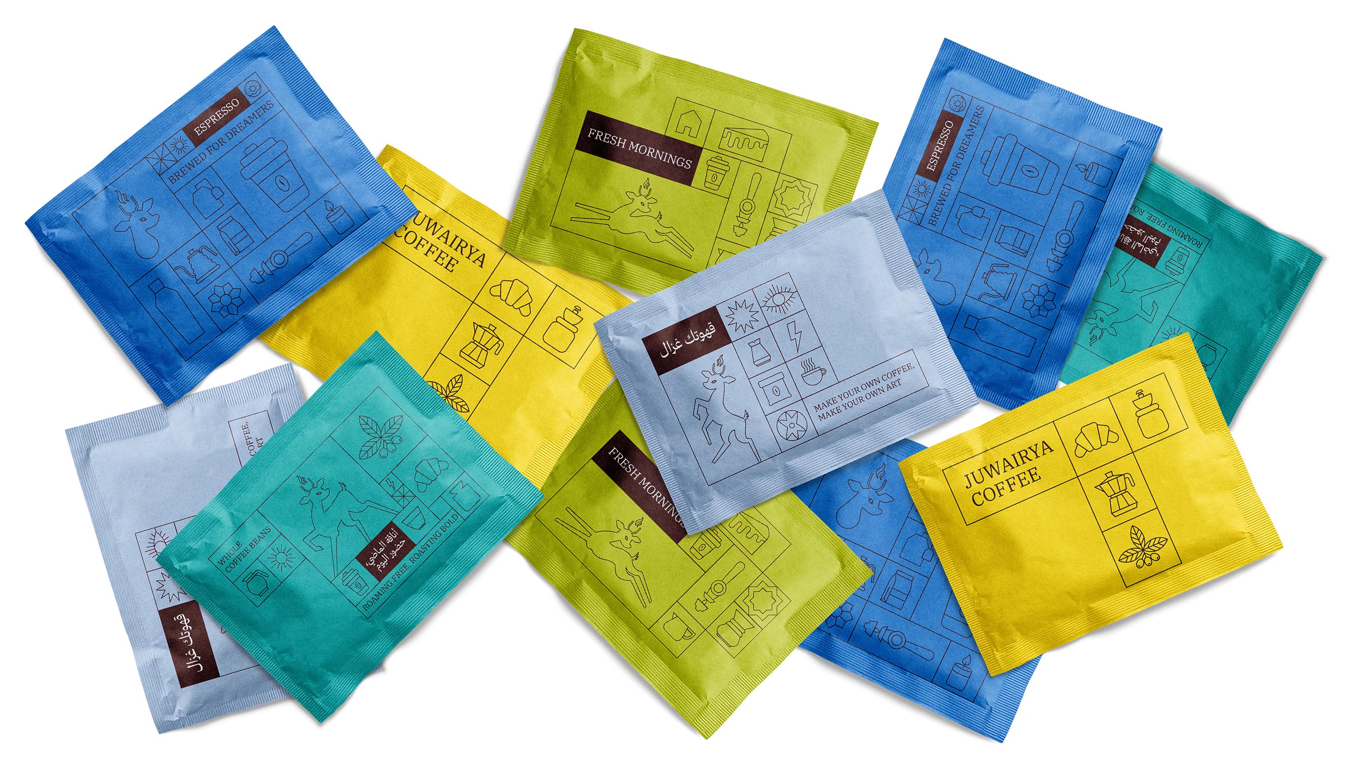 The name “Juwairya” was deliberately chosen for its boldness, femininity, and ability to bridge tradition and modernity. The brand identity revolves around energetic, illustrative elements such as dynamic shapes, vibrant colors, and expressive graphics that embody the lively, playful, yet sophisticated essence of the brand. Packaging was crafted to be visually distinctive, functional, and instantly recognizable, ensuring a premium experience at every touchpoint.
