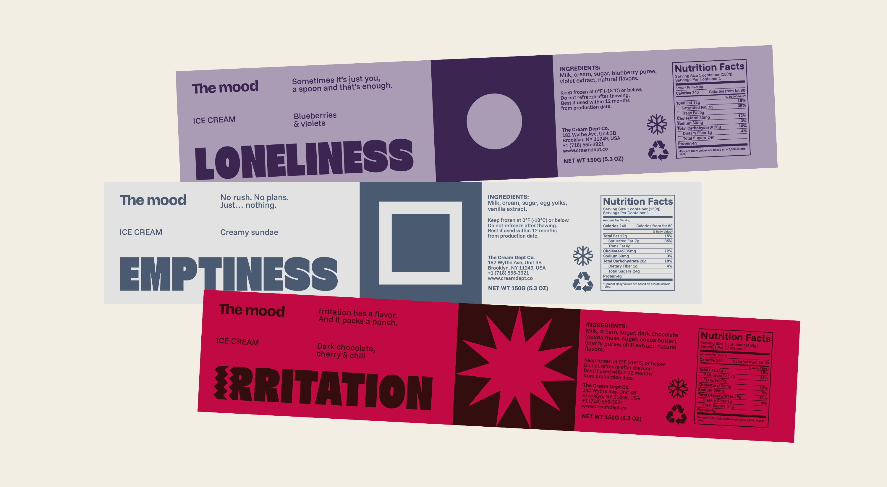 Our task was to create a brand concept that doesn’t appeal to rational flavor choice, but to a person’s emotional state. The goal? Turn ice cream into a way to express who you are and how you feel.