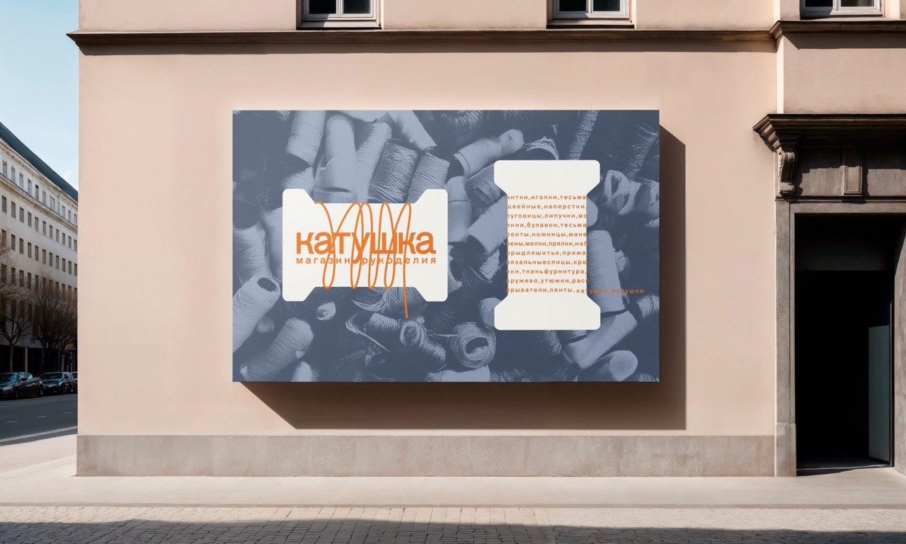 The identity of “Katushka” is built around the shapes and textures of spools made from various materials: threads, braids, yarn, and more. These elements, often overlooked in daily life, become central to our design. We transform text into threads that are carefully wound onto spools, creating unique and memorable visuals.