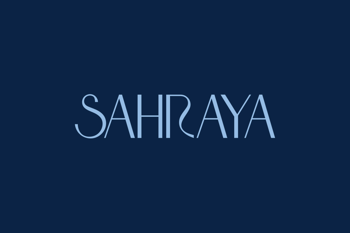 The SAHRAYA logotype is designed to embody femininity, fluidity, and quiet elegance.