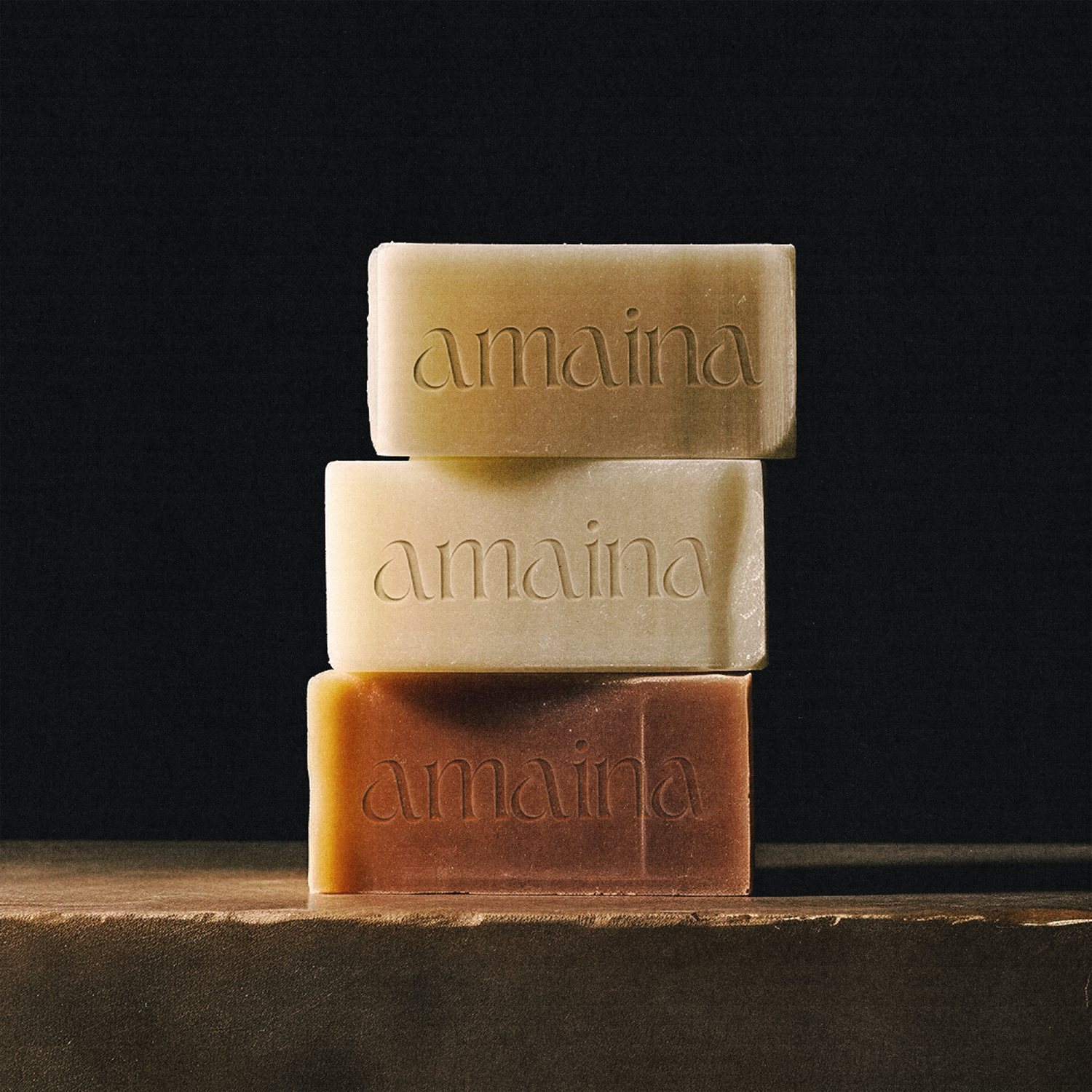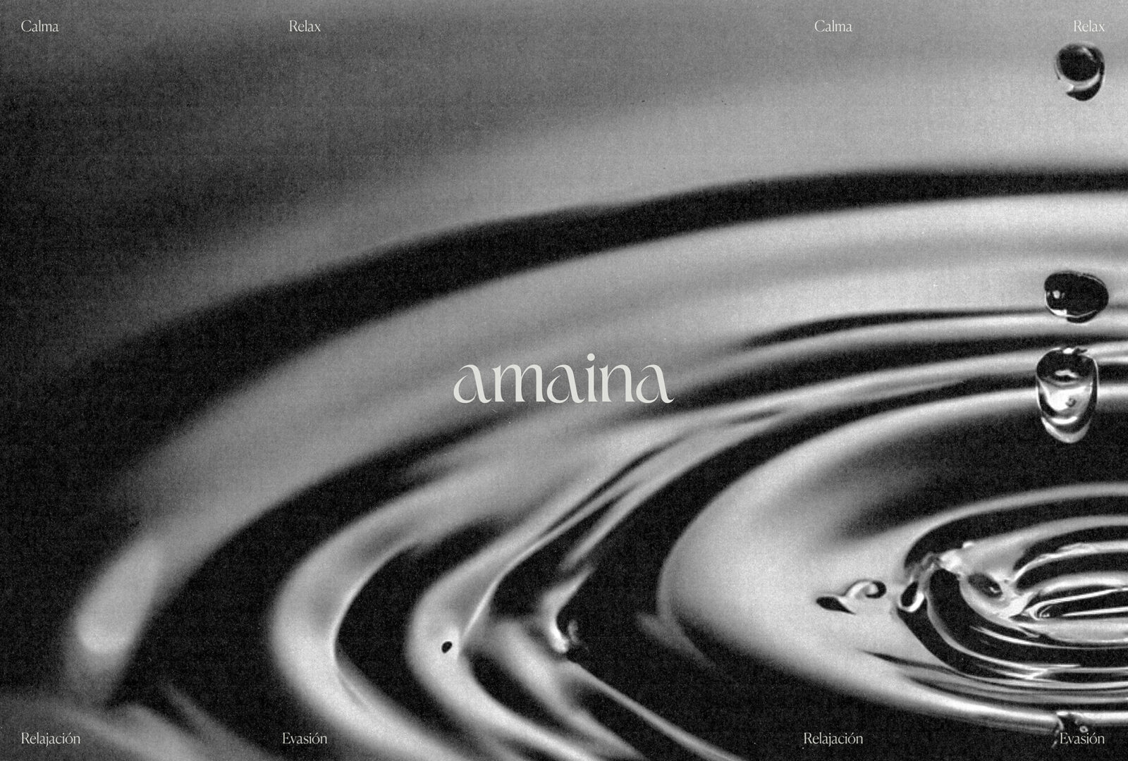 The visual identity embraces simplicity and elegance, where the fluidity of water and the gradual fading of tension are central motifs. The typography, with its delicate and slightly curved forms, reinforces the soft and serene atmosphere that permeates the spa’s identity. The logo ‘Amaina’ is designed in a refined custom typeface, establishing a connection to the natural and calming essence of water. The composition of the elements follows a rhythmic flow, just like the movement of ripples on water, guiding the viewer into a peaceful state of mind.