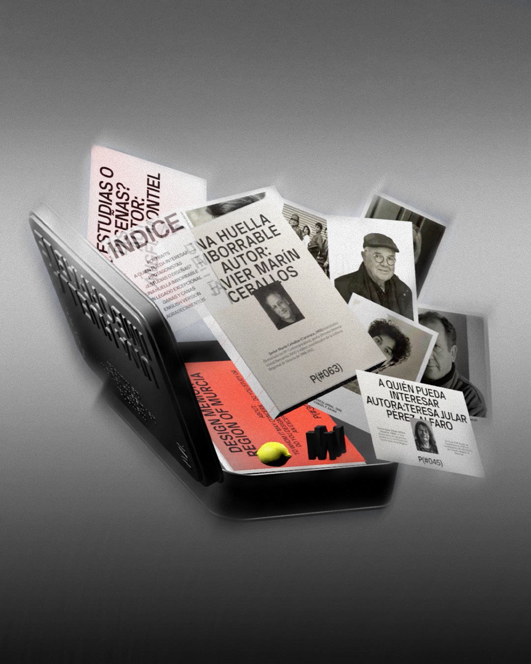 The Association of Design and Advertising Professionals of Murcia is promoting a historical compilation project on design in the region—an unprecedented initiative that redefines the editorial format. The concept of memory is pushed to its limits, transforming publishing into a physical archival experience, where design is read, handled, discovered, and activated.