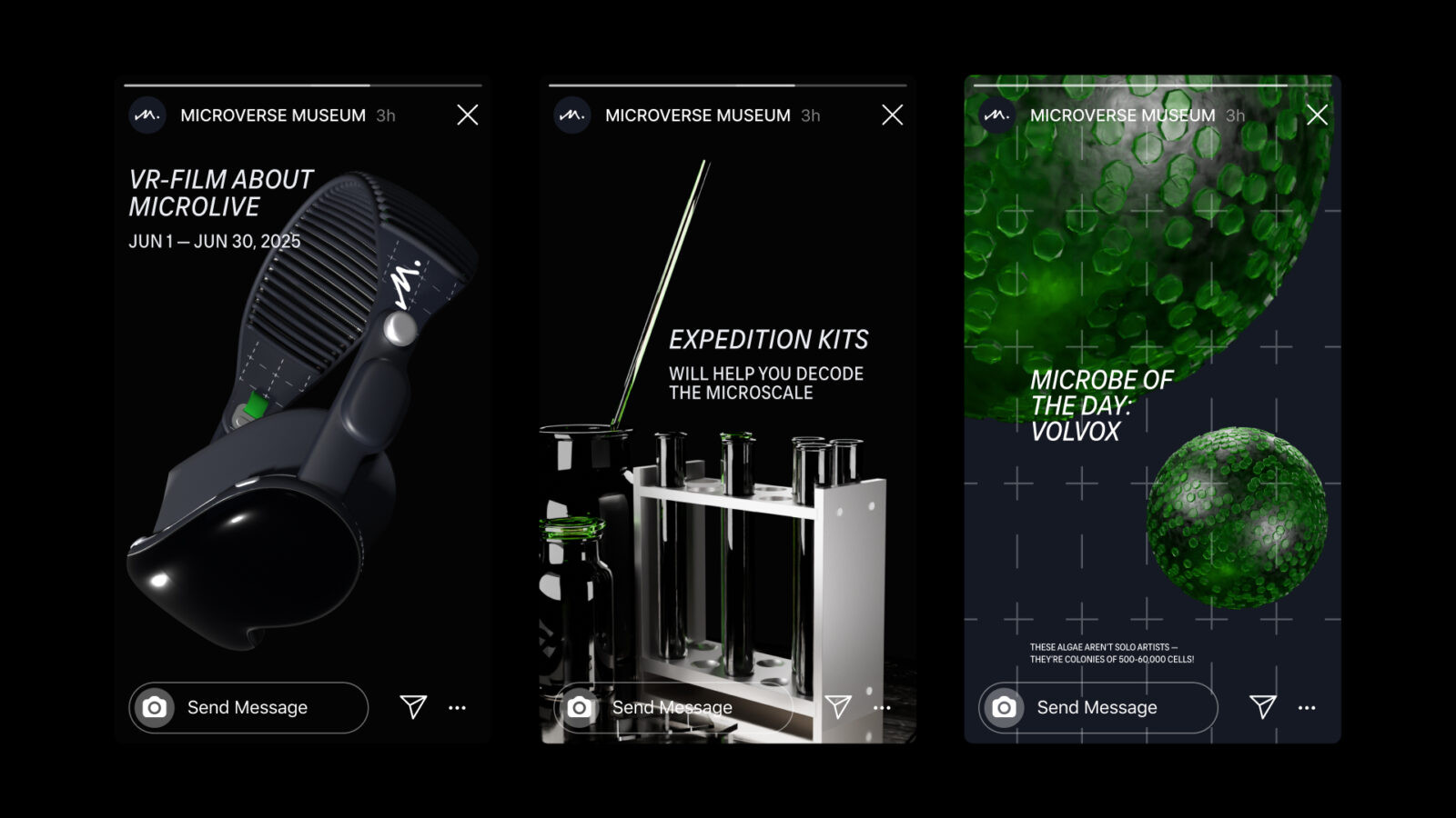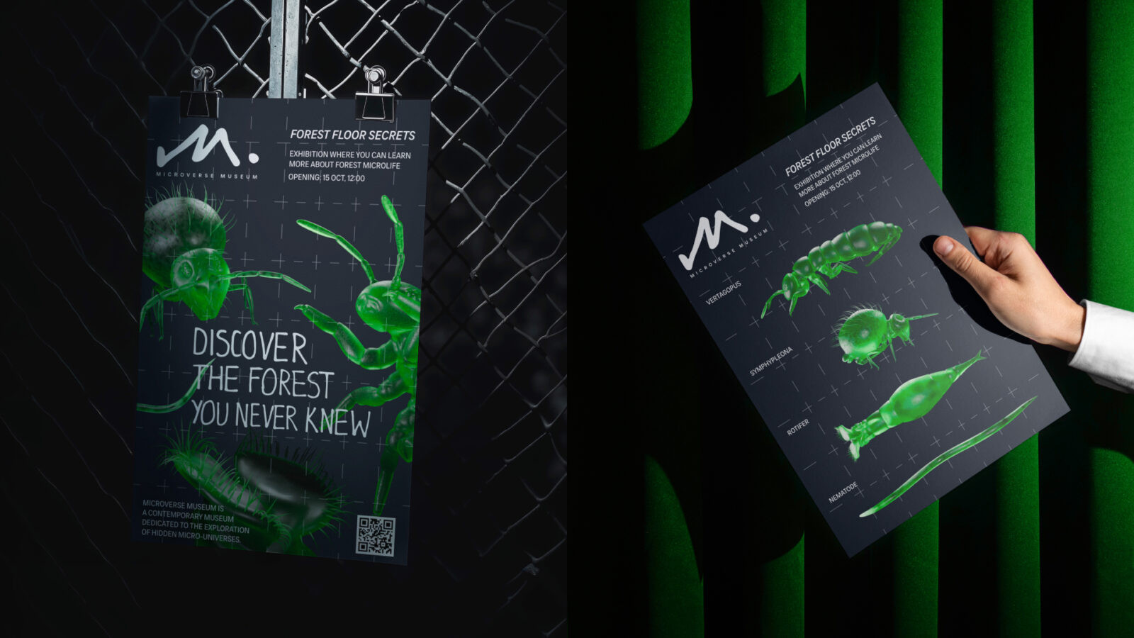 MICROVERSE MUSEUM is a modern international museum dedicated to exploring the microscopic world. It offers interactive exhibits, online courses on microorganisms, home experiment kits, and opportunities to participate in real international expeditions studying natural microsystems. An insight that inspired me for my identity is that adult life has overwhelmed me with responsibilities. I feel like I’ve lost that spark of curiosity I had as a child. It seems to me that the world is becoming dull, and life is turning into a to-do list rather than an adventure. I don’t know how to pause in this flow and take a deep breath, to awaken my thirst for life and find the lost interest. From this, the slogan “Let curiosity guide you” was born. When I was researching museums in different countries, I found a problem: science often presents itself as static and academic. Even interactive museums sometimes struggle to overcome the complexities of concepts and explain them in a simple and engaging way.