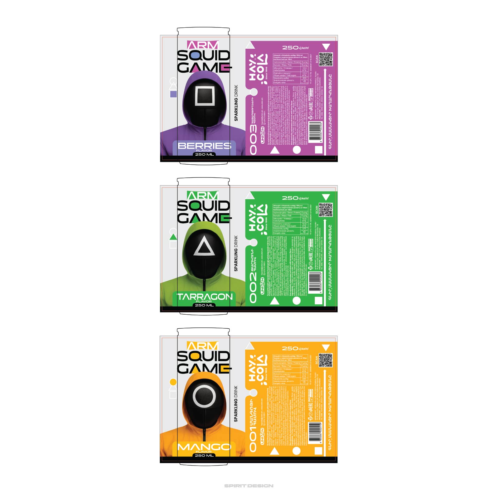 The final result is a striking trio of cans that successfully bridges entertainment culture and product branding. The design directly connects to the ARM Squid Game universe while enhancing the drink’s presence on retail shelves and digital platforms. It positions the product not just as a beverage, but as a visual extension of a popular cultural phenomenon, increasing memorability, engagement, and brand value.
