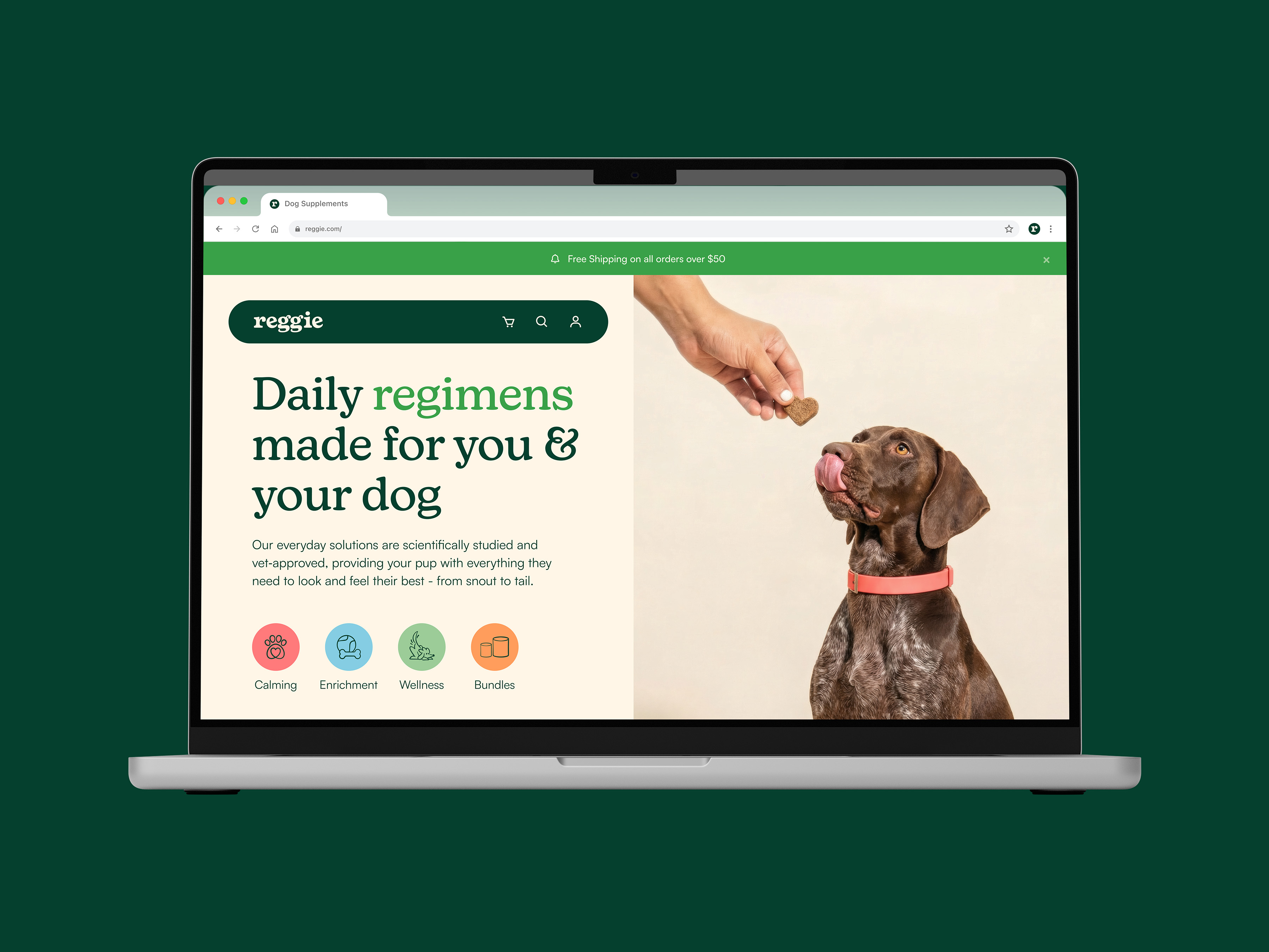 As the brand expanded its product ecosystem, from treats to wellness accessories, Reggie needed a clearer, more approachable identity that could communicate expertise without feeling cold or overly clinical.
