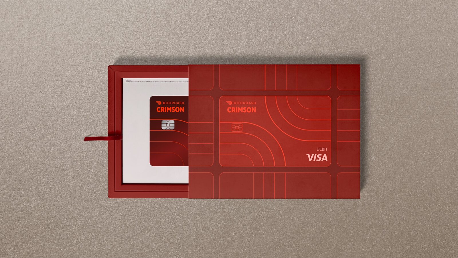 The DoorDash Crimson card creates a distinct sub-brand identity while maintaining clear connection to a parent brand’s visual heritage, reflecting DoorDash’s brand values through design choices that are as considered as they are consistent.