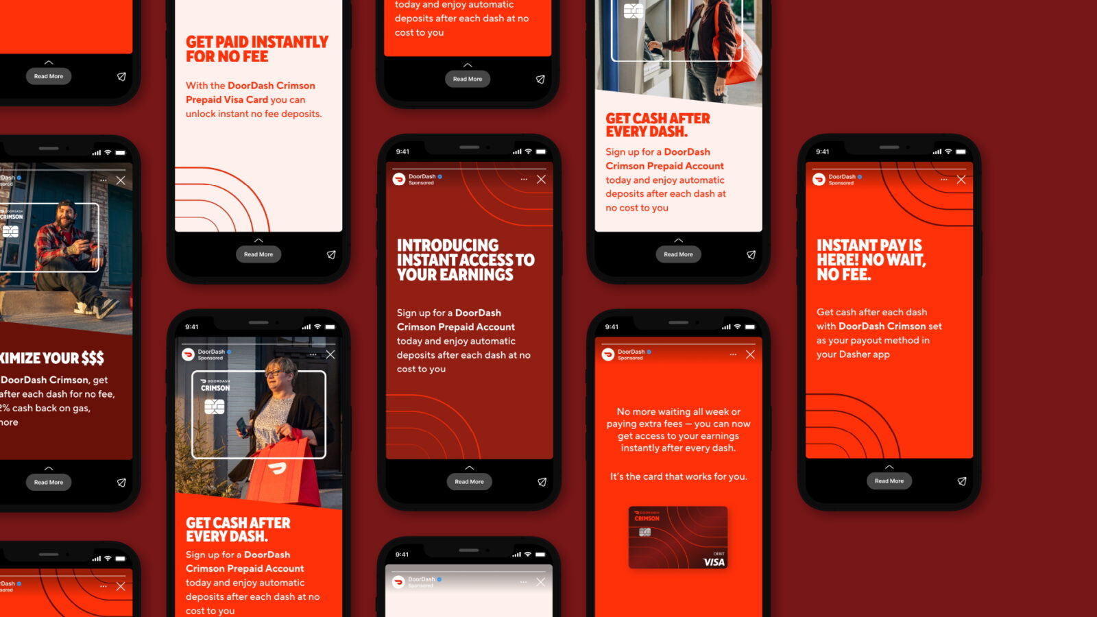 At the heart of the DoorDash Crimson card is a deceptively simple premise: Help delivery drivers get paid instantly, without fees, after every job. But while the product solves a real financial problem, the design solution had to do more. It needed to feel premium, personal, and unmistakably DoorDash.