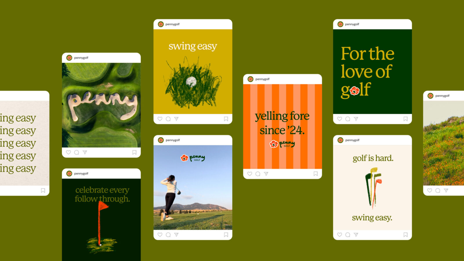 Tone of voice became a key tool. Penny Golf speaks with clarity and wit, encouraging play without condescension. Whether writing for packaging, social content, or product descriptions, the voice stays grounded in the brand’s founding idea: golf may be challenging, but the experience of it can still be joyful.