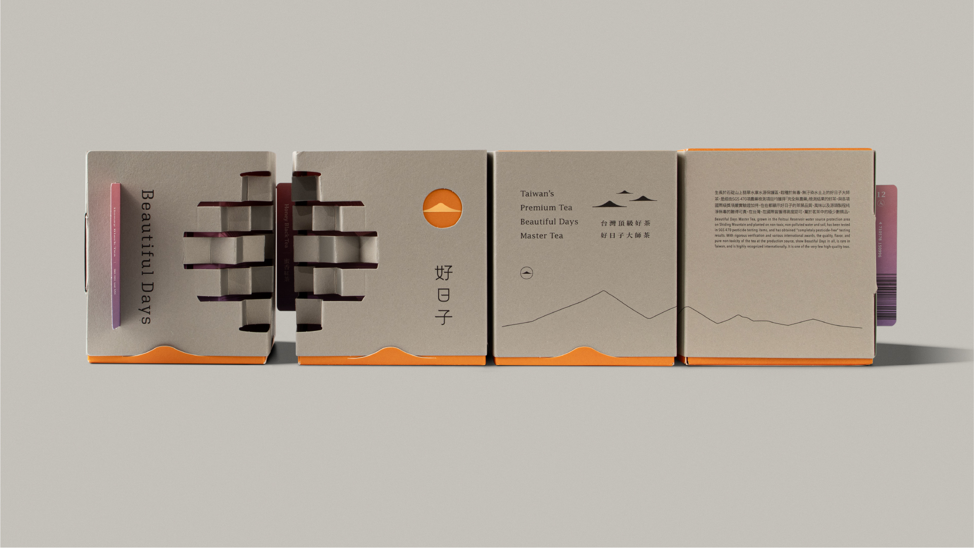 Beautiful Days is a Taiwanese tea brand whose tea leaves are grown in the protected watershed area of the Feitsui Reservoir. As the brand evolved, its original identi. As the brand evolved, its original identity no longer sufficiently represented its natural farming values, tea origin, and growing product range.