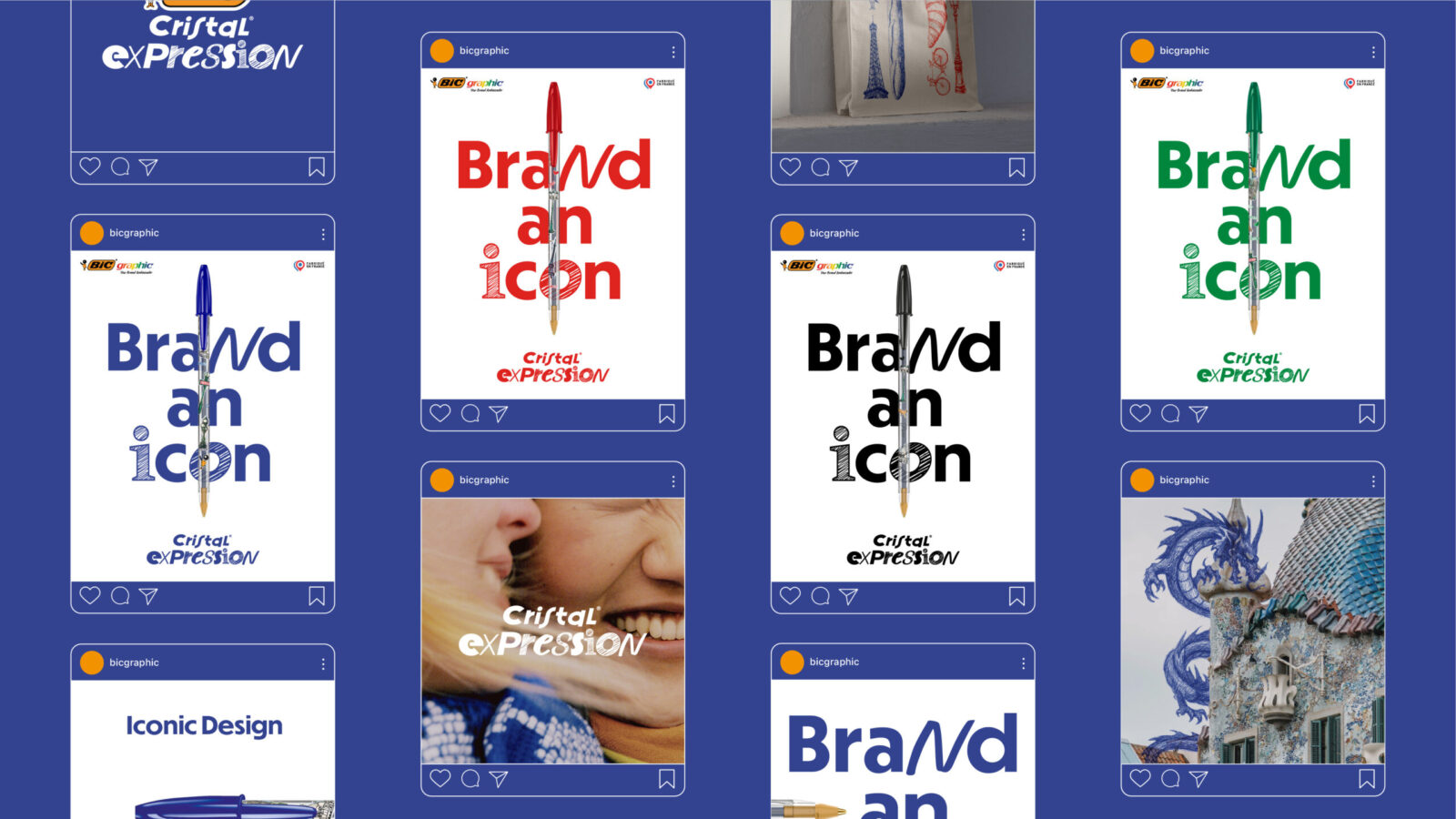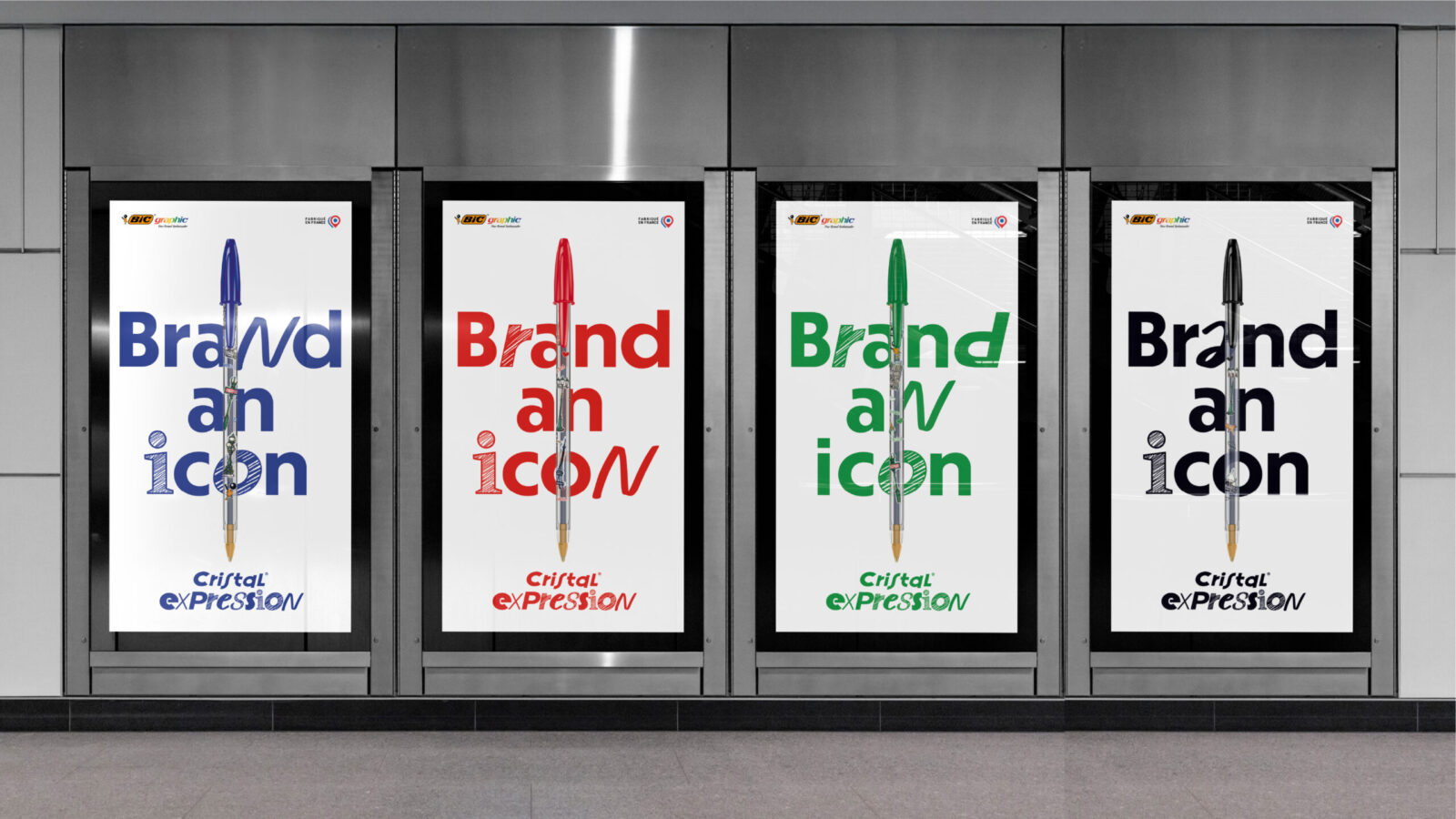 All this was encapsulated in the tagline “Brand an Icon,” the centerpiece of the graphic language. Drawing on BIC’s iconic transparent design, distinctive cap, and recognizable colors, we created an authentic and original campaign that highlights the brand’s highly identifiable signature elements.