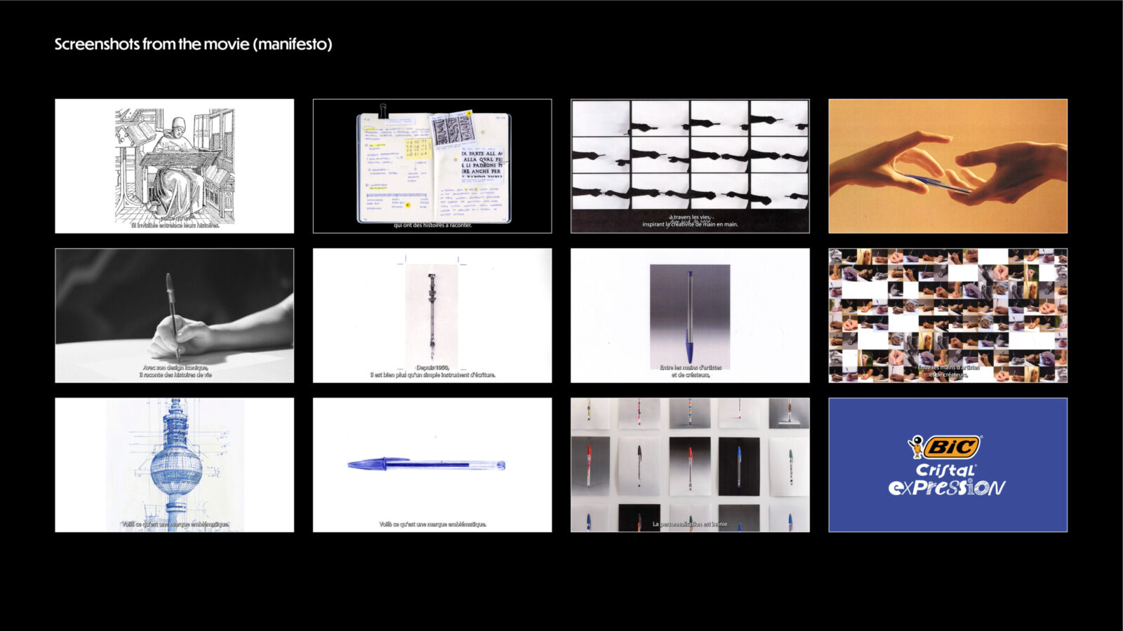 BIC Graphic, the B2B division of BIC Group, turned to Morillas to develop the identity and communication strategy for BIC Cristal Expression, a customizable version of the iconic BIC Cristal pen. This innovative concept enables iconic brands, cultural institutions, and artistic spaces to tell their stories and leave a lasting impression through a legendary product. The campaign was designed to create emotional and memorable connections in key markets—France, Italy, and Germany—a major challenge in the corporate promotional sector. The campaign is encapsulated in a manifesto video