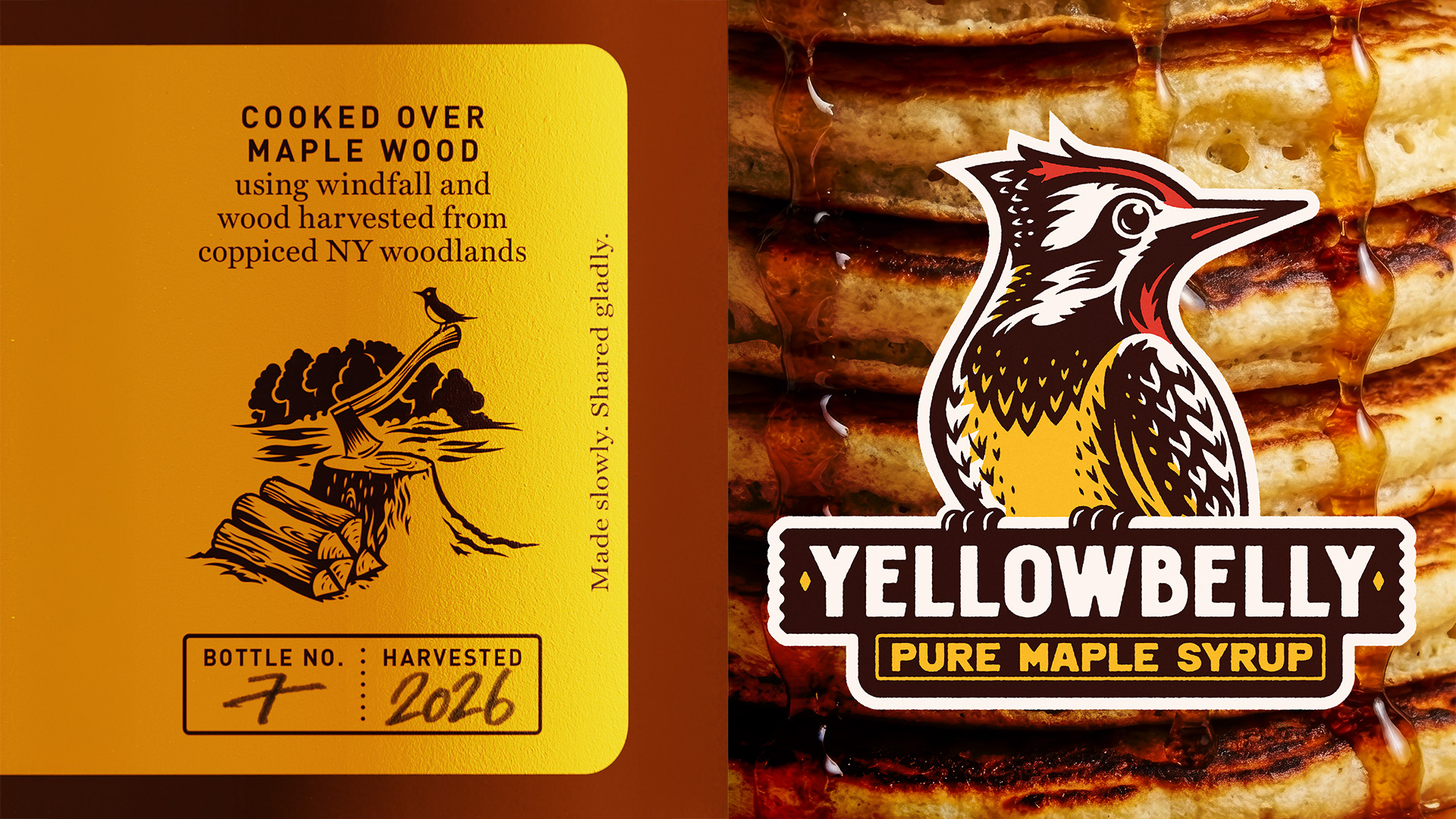 Yellowbelly is a small-batch Hudson Valley maple syrup, and passion project inspired by woodland craft, traditional sugaring methods, and woodcut illustration. Created by Creative Director Christian Bird, of Bird&Co.