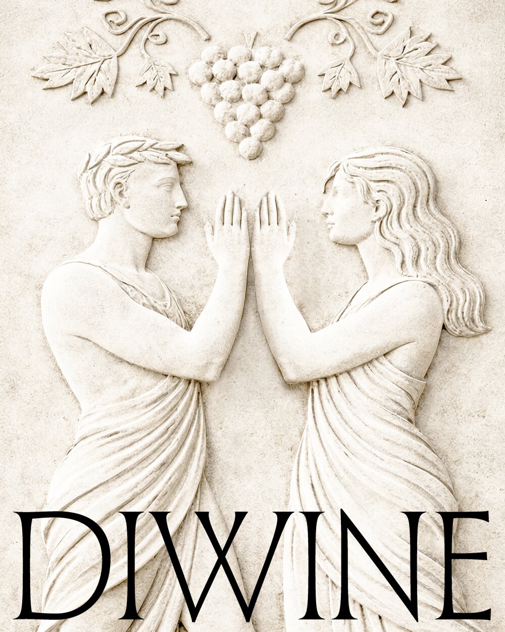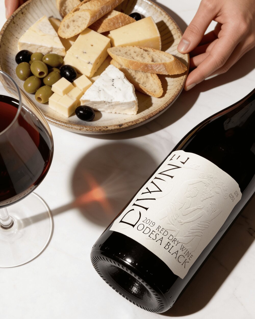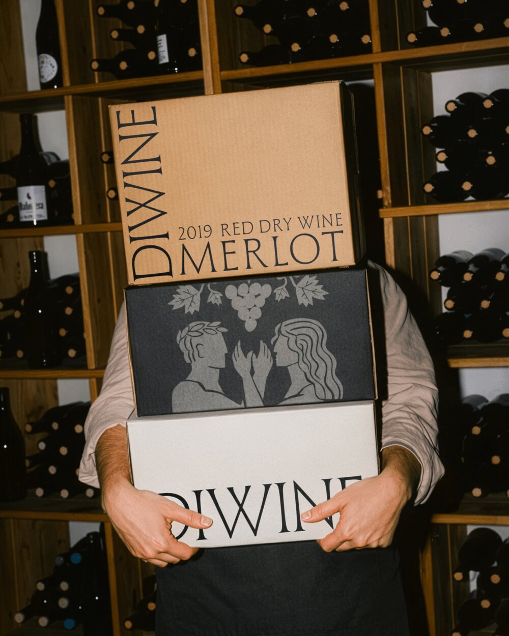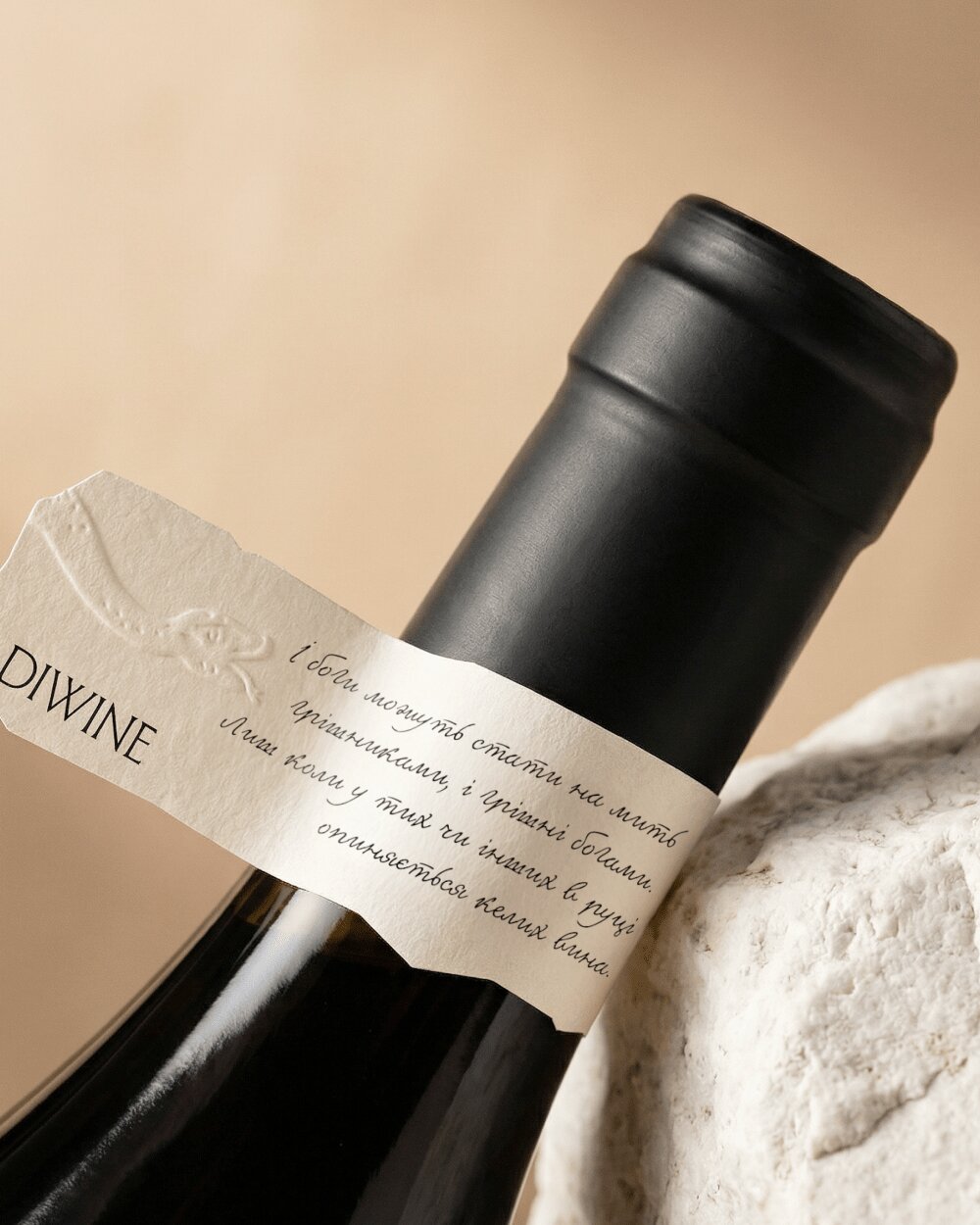 But since we’re data-driven creatives, the real starting point was conversations with people who regularly buy wine. We wanted to understand how our audience perceives the category — what they pay attention to and what actually creates friction when choosing a bottle. What we discovered was simple: most wine brands talk about themselves almost exclusively through the product. They describe flavor profiles, production techniques, regions of origin. For consumers, this has become the standard set of information — and it rarely influences the decision. People expect something more alive from wine communication. Yes, they want to know the wine tastes good. But just as importantly, they want the brand to carry a story — something worth sharing while everyone gathers around the table. So we decided to dig deeper than product attributes when defining the strategic message. Strategy & Naming Looking into wine’s cultural and historical role, we noticed an intriguing pattern. Wine has always existed at the border of two worlds. It belonged both to gods and to everyday human life. It brought together opposites — purity and sin, sacredness and indulgence. This observation became the foundation of the brand idea: wine as the fine line where the divine and the earthly coexist. The name Diwine emerged from a play on the word divine. It carries the sound of something heavenly, but also hints at a subtle provocation. A reminder that within every divine moment there is always something deeply human. With that, the brand gained a narrative that reaches beyond the wine category and speaks about human nature itself. Design Approach