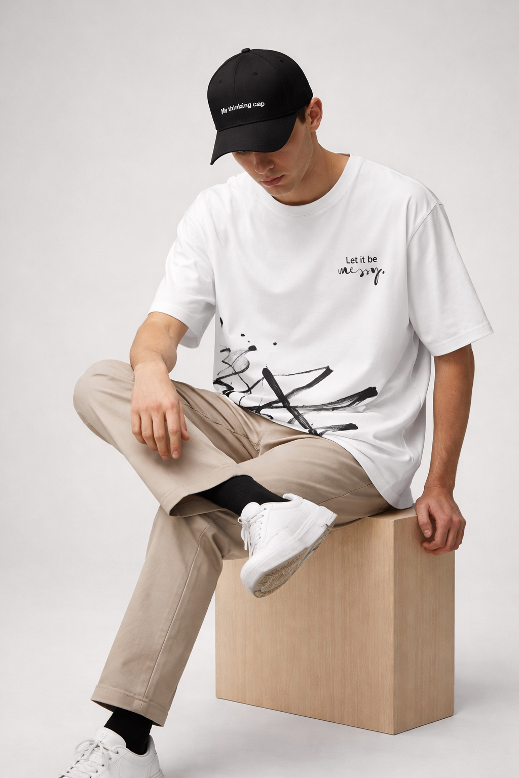 The approach reframed merchandise as a medium for self-expression rather than promotion. Each item was conceived as a wearable idea; using humor, introspection, and subtle provocation to mirror the mindset, contradictions, and daily realities of creatives. The copy draws from familiar phrases, creative struggles, and internet-native language, balancing wit with relatability. Visually, the collection combines clean typography with expressive graphics and illustrative elements, allowing each piece to stand on its own while remaining part of a cohesive system.
