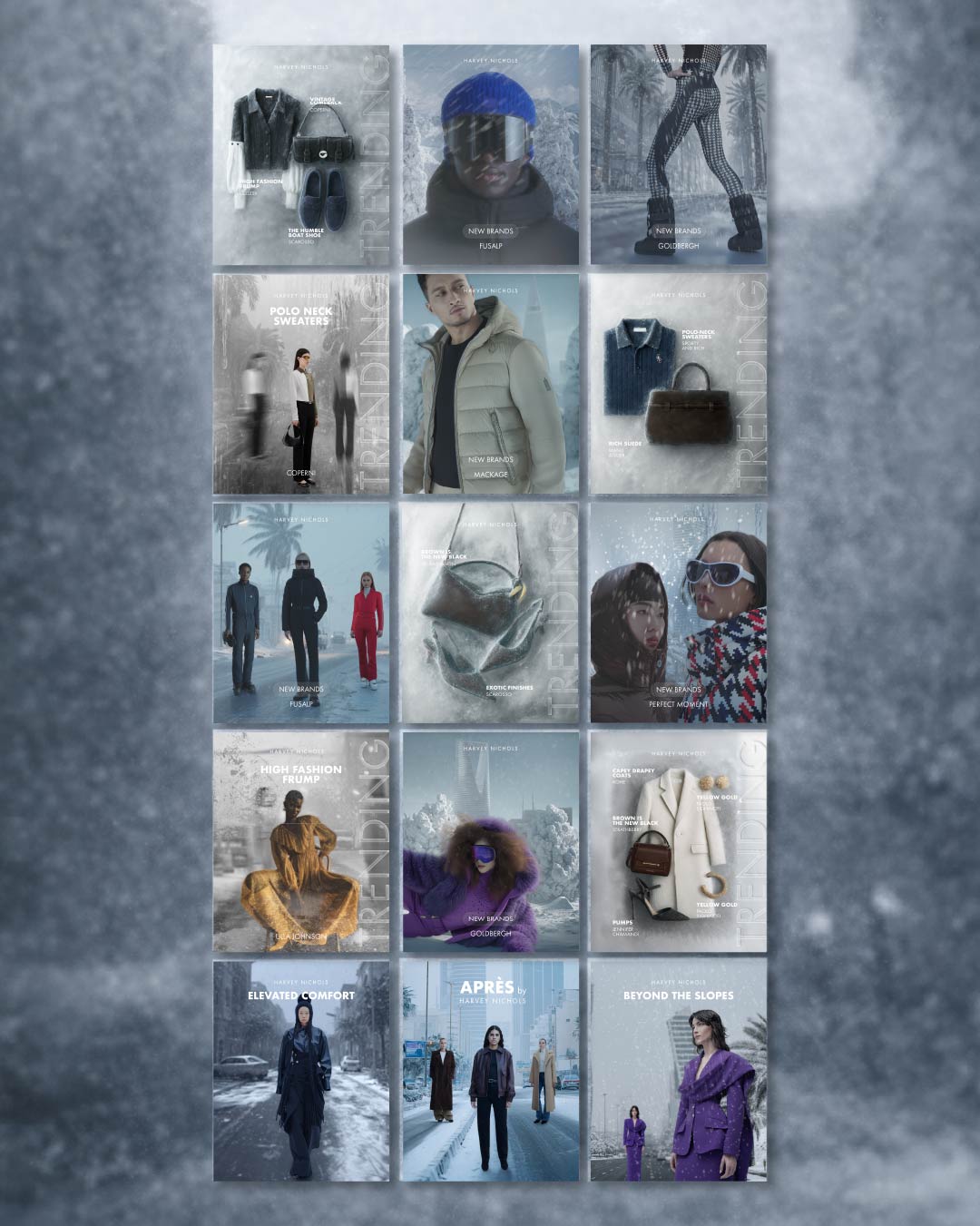 Rather than presenting winter as a literal climate, the campaign explored it as a visual and emotional atmosphere. This allowed for a localized interpretation of Après-Ski that felt approachable and relatable to the Riyadh audience, while still aligning with Harvey Nichols’ international fashion positioning. The contrast between warm, familiar surroundings and winter-inspired details helped create a narrative that was imaginative yet restrained.