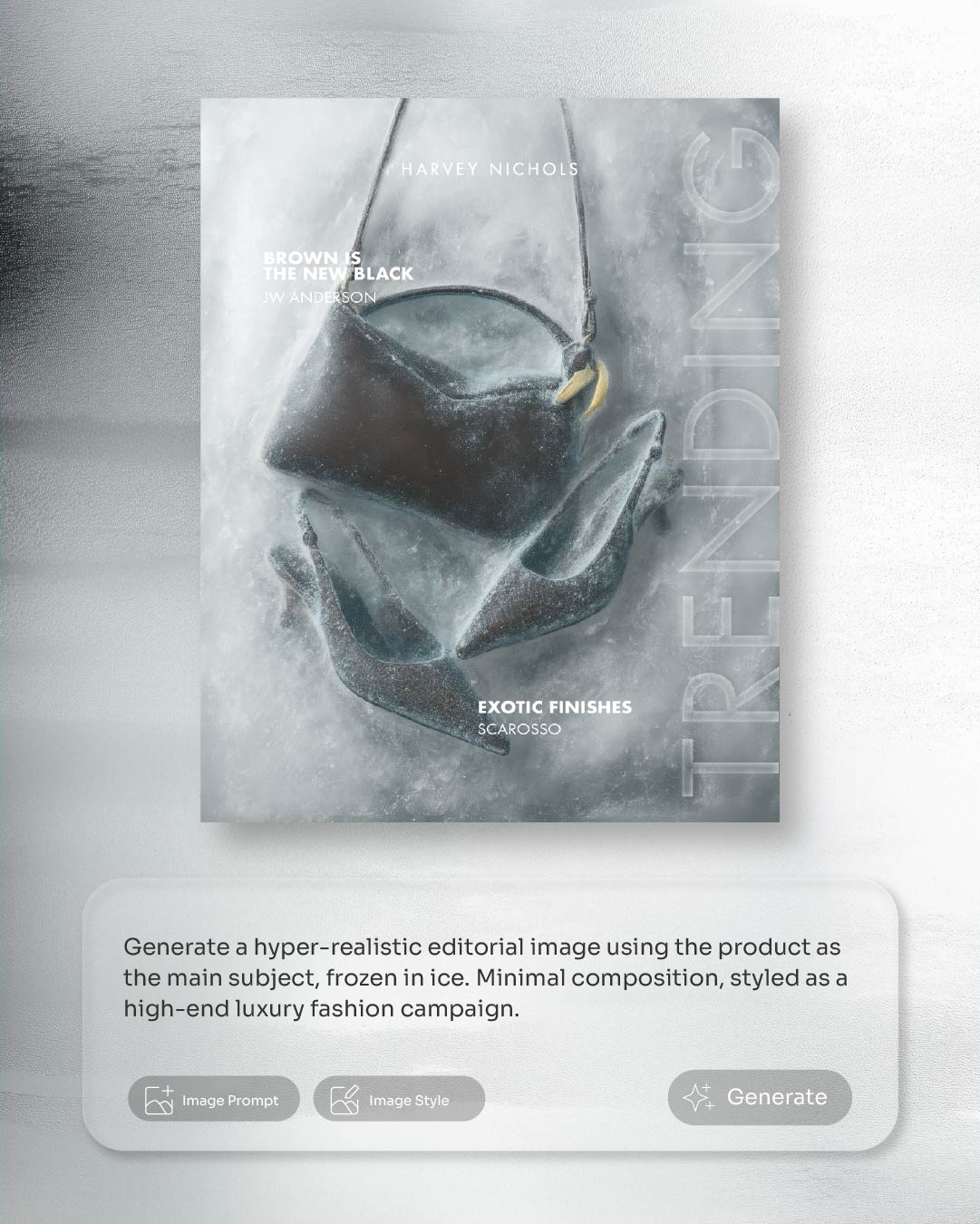 Blue Hat, a Global Design & Innovation Consultancy, was commissioned to develop the Autumn/Winter campaign for Harvey Nichols Riyadh. The concept focused on reinterpreting familiar Saudi urban environments through a winter perspective, subtly transforming local architecture into a snow-dusted setting. By using AI technology, elements such as frost, snowfall, and cooler atmospheric tones were integrated into recognizably Saudi locations, creating imagery that feels both unexpected and contextually relevant. The approach balanced global fashion aesthetics with a strong sense of place, ensuring the campaign remained culturally grounded.