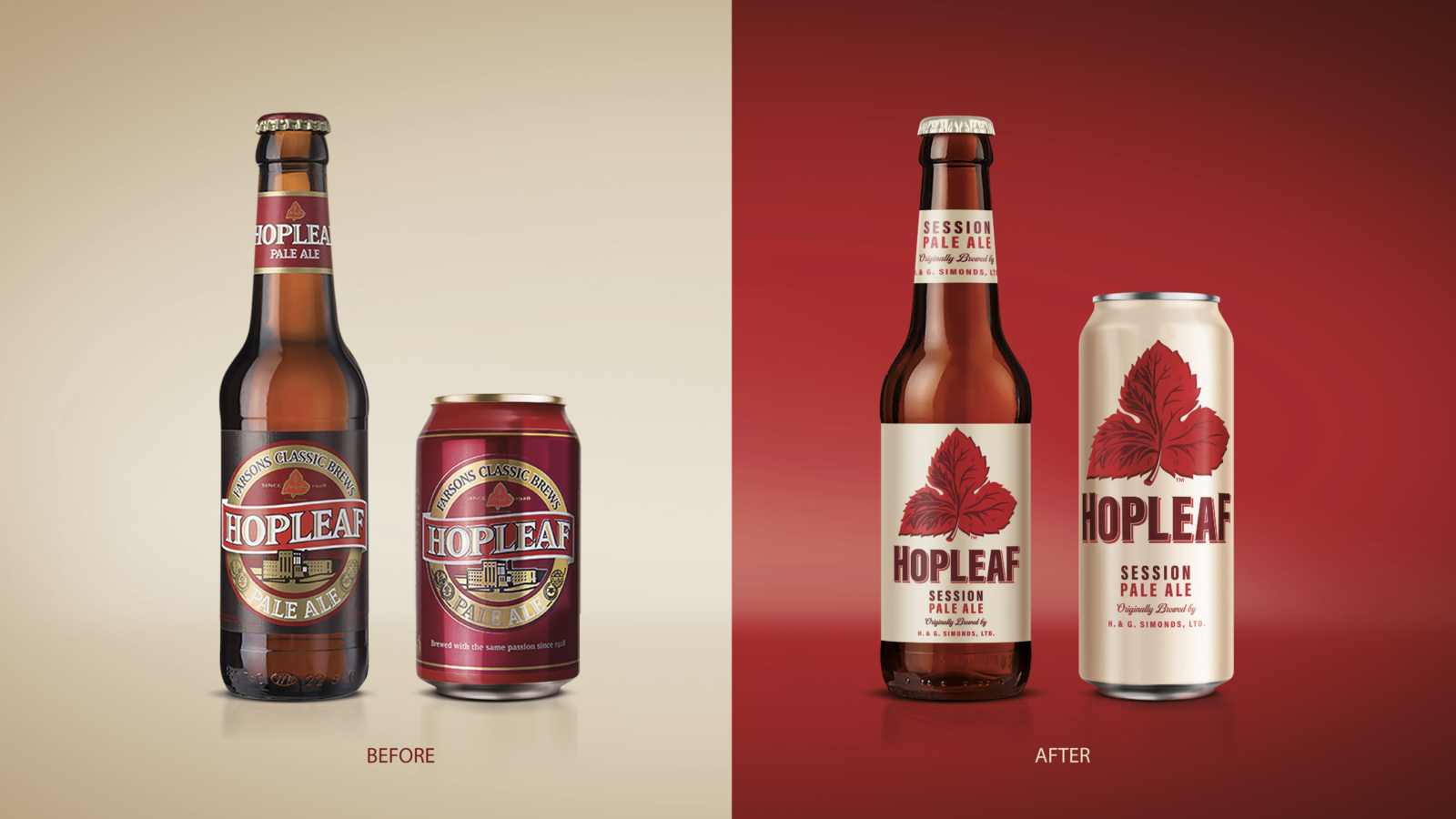 The whole design system was created to feel restored rather than redesigned for a bold new generation; confident on cluttered shelves, characterful in the hand, and unmistakably Hopleaf from ten metres to ten pixels.