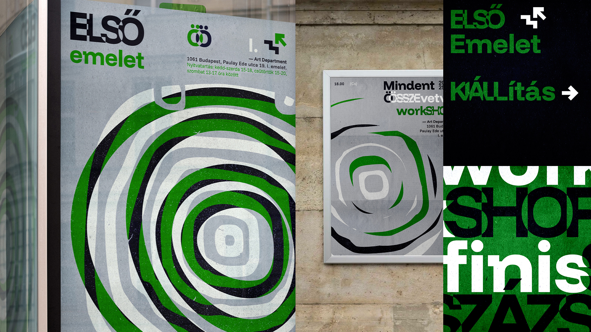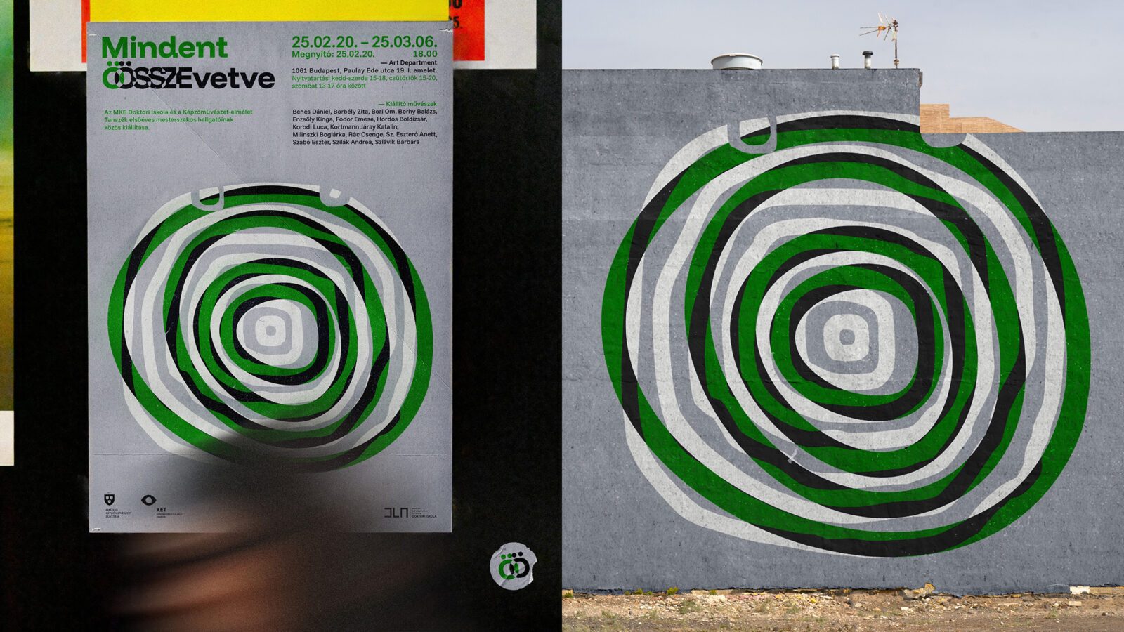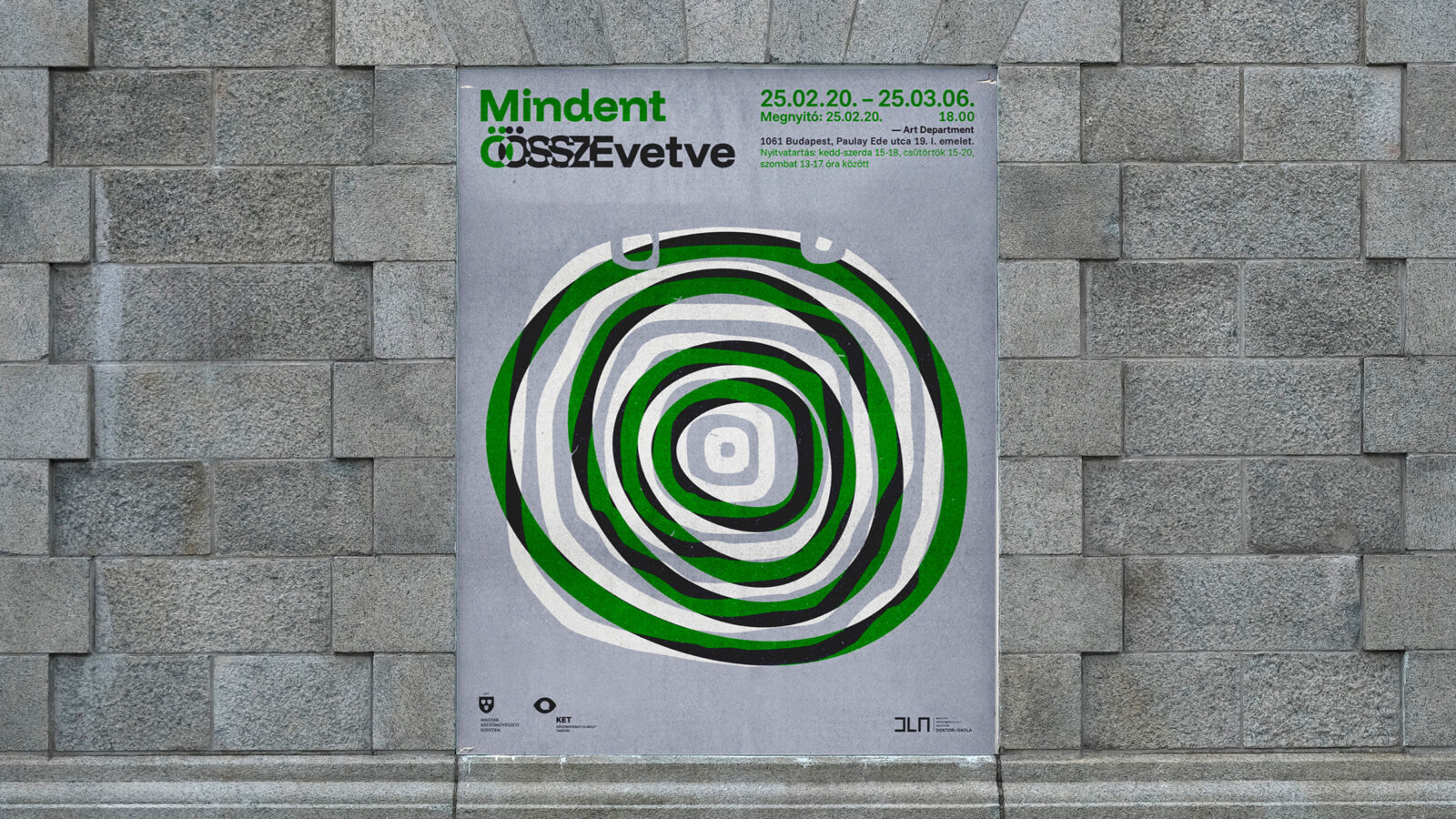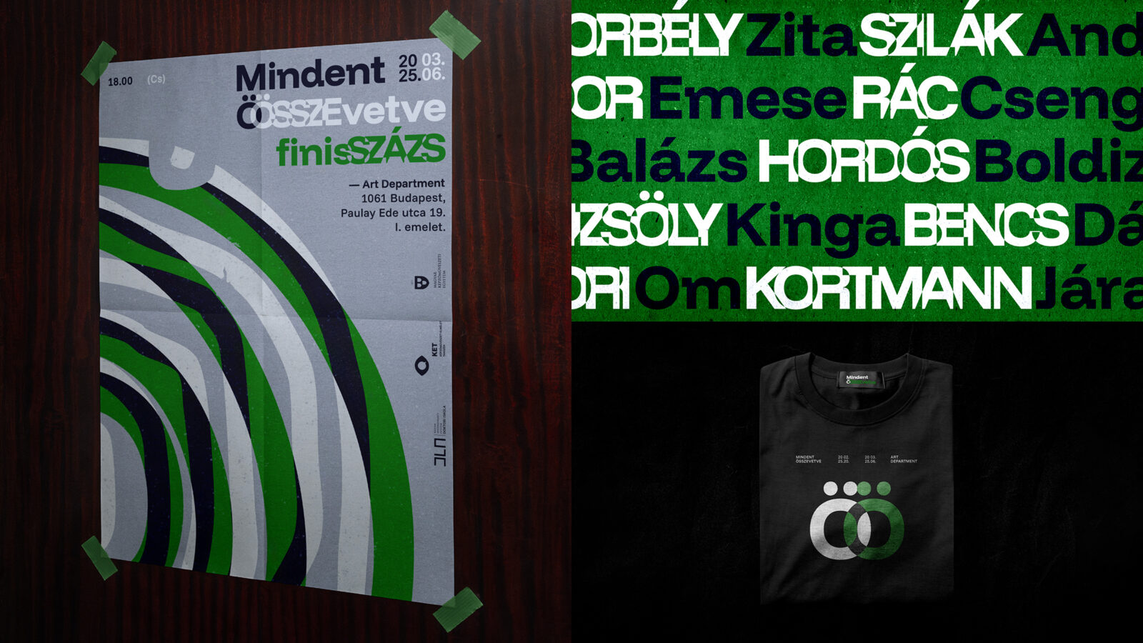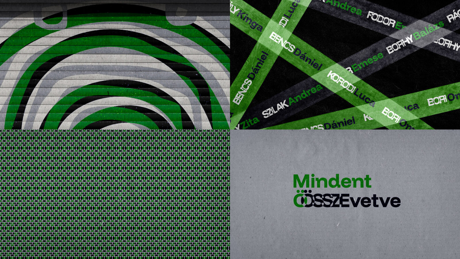 The visual identity for the Mindent Összevetve (i.e. All Things Considered) exhibition came out for the collaboration between the Doctoral School at the Hungarian University of Fine Arts and the first-year MA students from the Fine Art Theory Department. The exhibition is a trace of a process: not a finished product, but a snapshot of an organic system. In this sense, it also reflects the workings of intellectual and creative workshops, where ideas and artworks continuously shape each other.