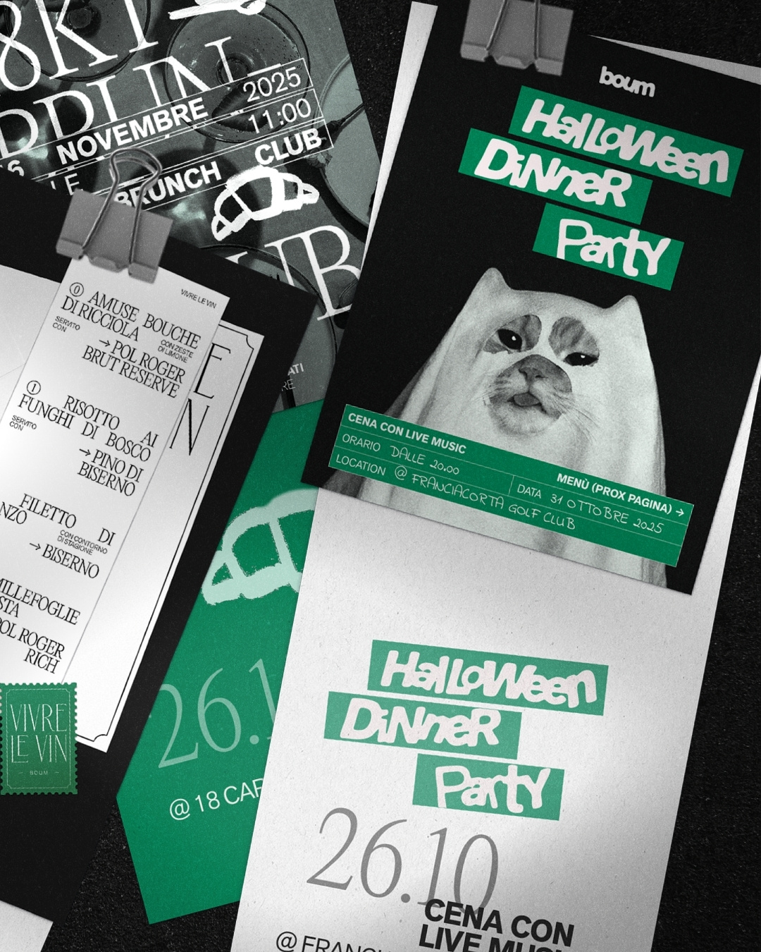 The sub-brand system is the first pillar: each event is defined by its own visual identity, while retaining the BOUM logotype as a shared element of recognition. Around this mechanism, an experiential communication takes shape: one that doesn’t describe events but makes them felt through content that evokes a specific way of experiencing them.