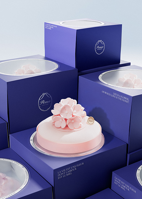 At the core of the new identity lies a system of restrained symbolism. The crown positioned above the letter “P” is not an ornamental gesture of luxury; it signifies authorship and mastery. In haute pâtisserie, excellence is expressed through discipline and consistency, not spectacle. The crown embodies this quiet authority, marking a standard upheld by craft. The ribbon element integrated within the full logo references the ritual of gifting embedded in French pastry culture. Every cake is conceived as an offering, carefully prepared and thoughtfully presented. Rather than functioning as sentimentality, the ribbon encodes intention—an acknowledgment that presentation and meaning are inseparable. Together, these elements create a logo that feels poised and deliberate, balancing romance with structural control.