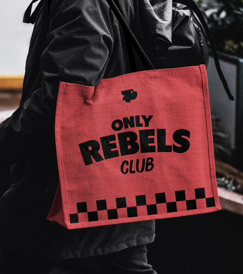 The visual identity translates this strategic territory into a strong, expressive, and proprietary system. The logo was built from typography with striking shapes and fluid curves, balancing strength and friendliness. Its design conveys energy and personality, reinforcing the friendly rebel behavior that guides the brand.