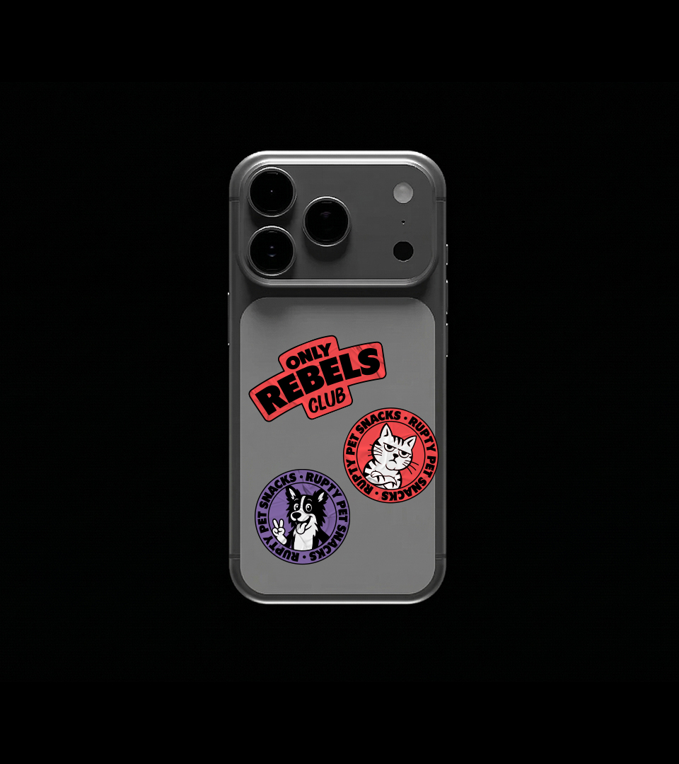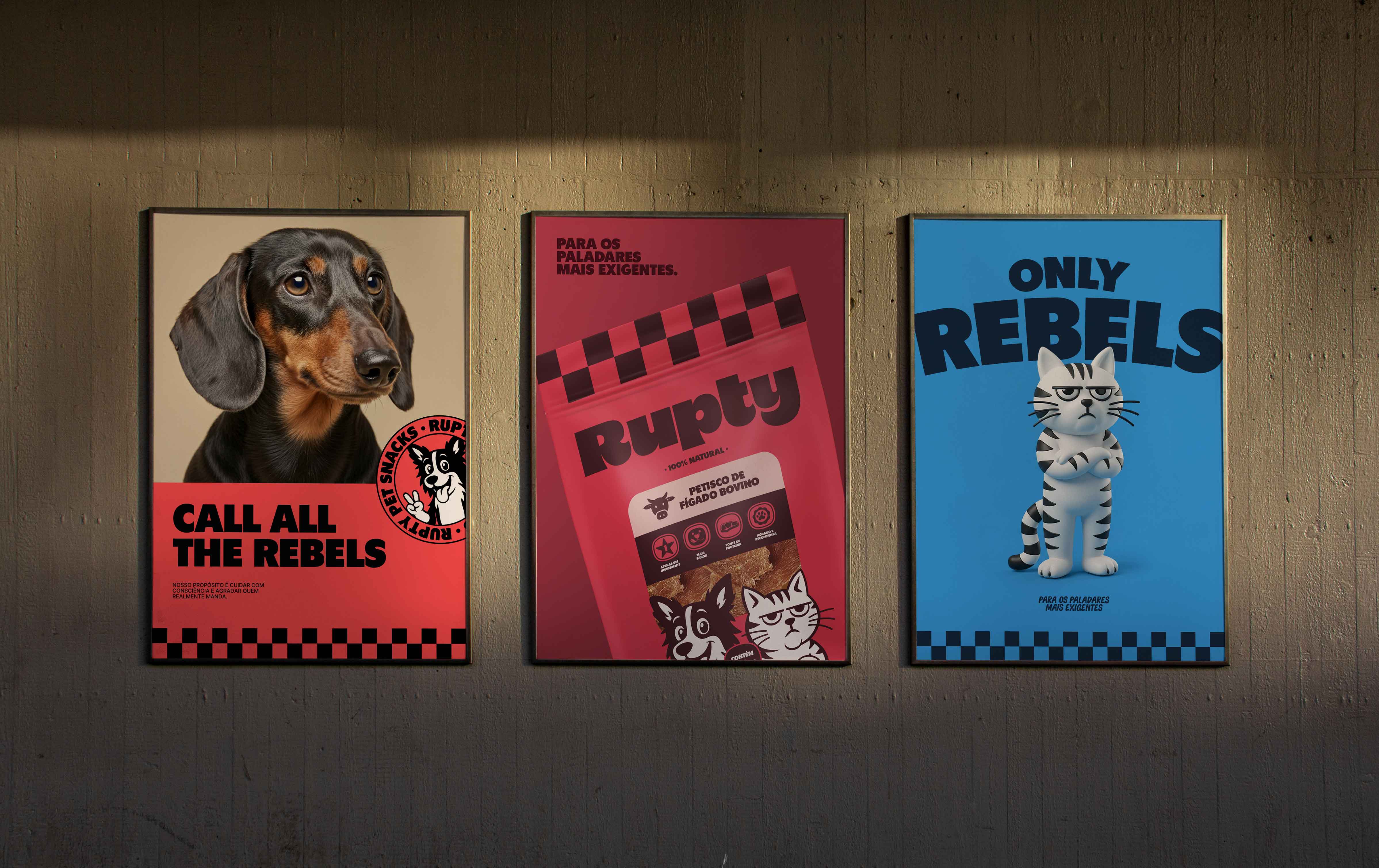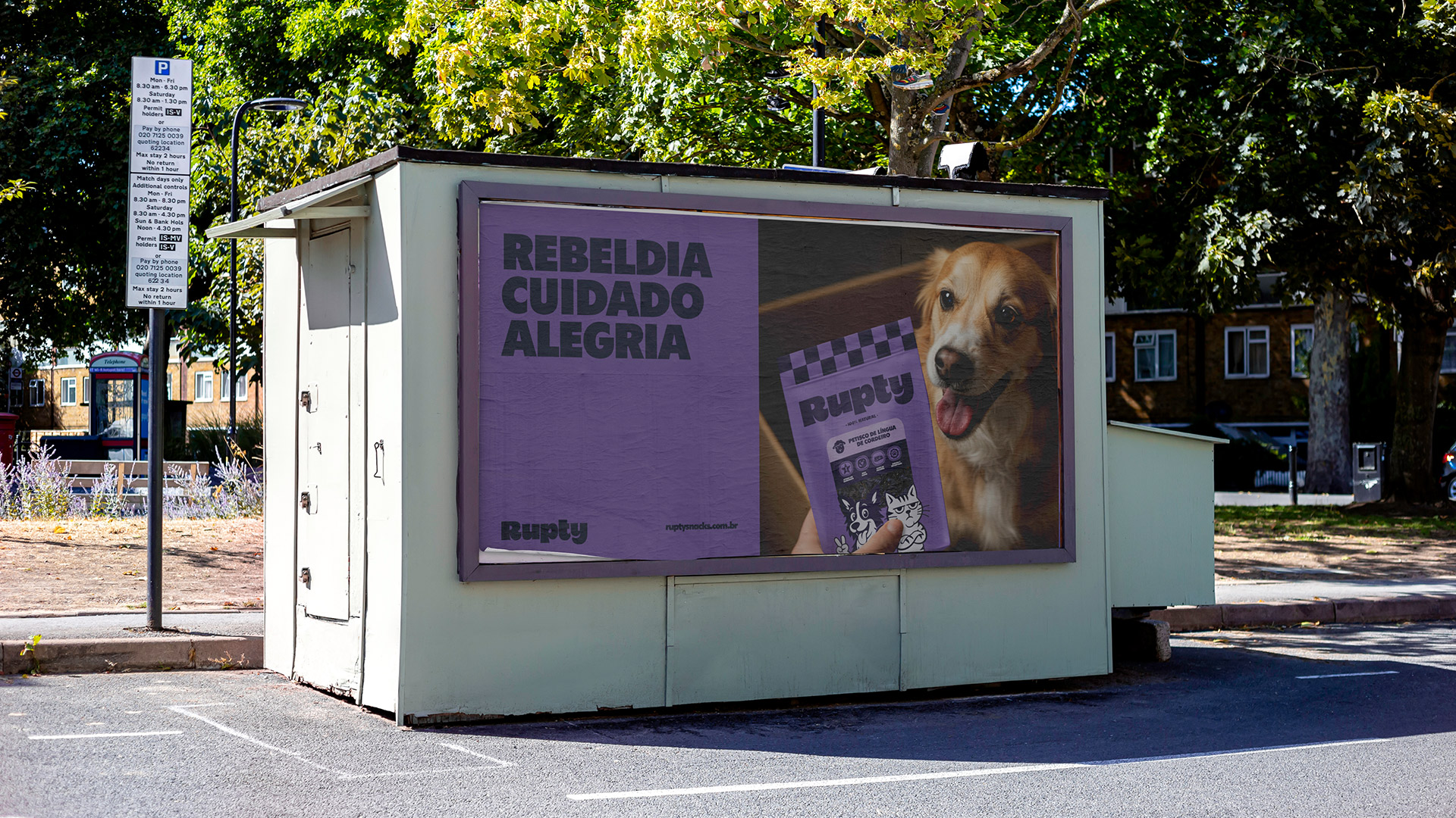 The symbol is born from the fusion of dog and cat silhouettes, representing that, at Rupty, all rebels are welcome. The monogram with the letter “R” works as a quick signature, expanding applicability and strengthening recognition across different formats.