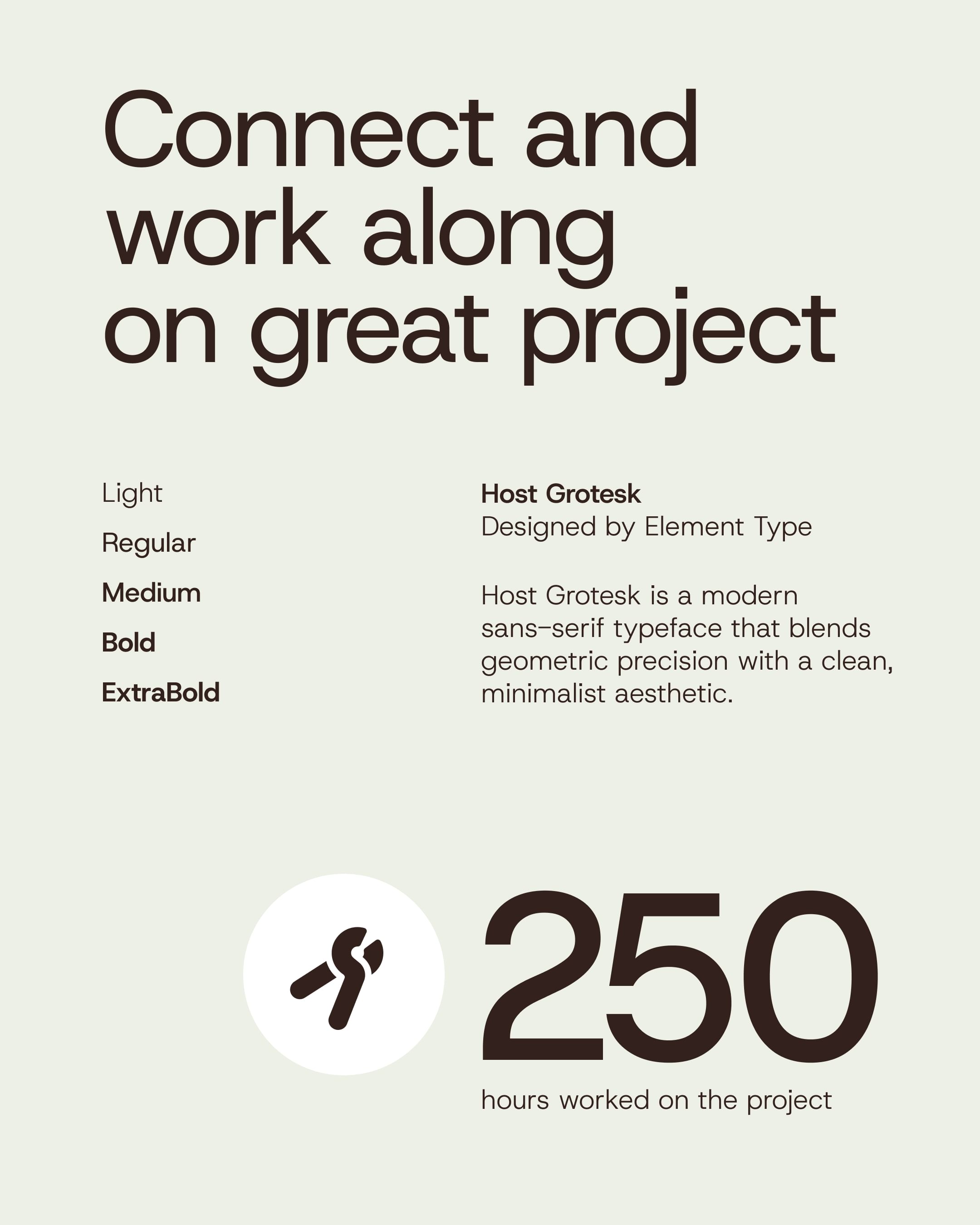Typography is modern, clean, and intentionally soft — professional without losing warmth.