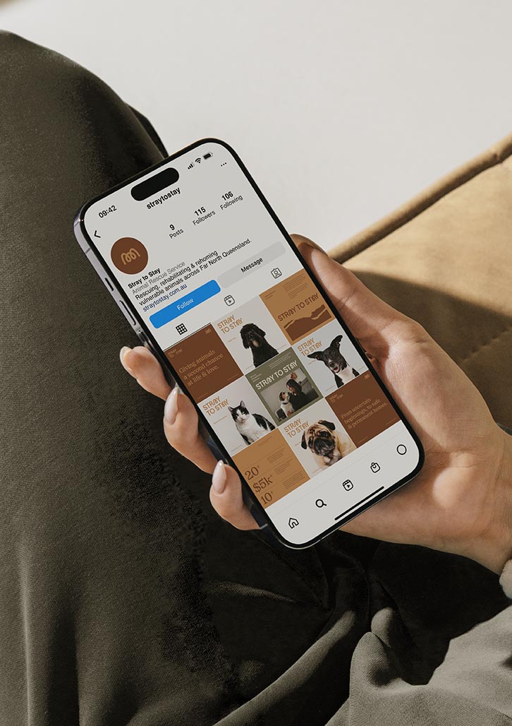 Searching for a brand designer, Stray to Stay selected Percept to create the brand identity for their not-for-profit organisation in Far North Queensland that rescues and re-homes pets in need.