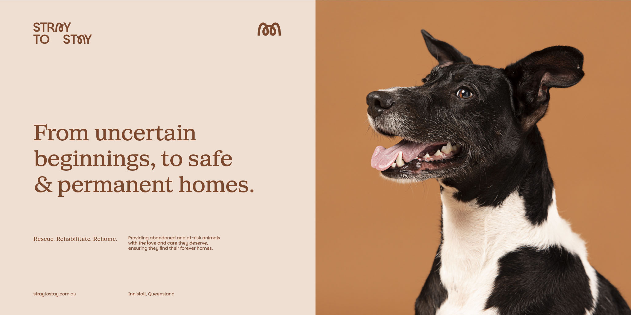 The brand positioning and identity design purposefully represents the NFP organisation as one that doesn’t just re-home animals, but redefines pet adoption as a guided, supportive and hopeful journey from uncertainty to belonging. By basing the brand positioning in authenticity, regional connection and community spirit, the brand identity that was created from these foundations helped Stray to Stay become more than a rescue service now it is a catalyst for change.