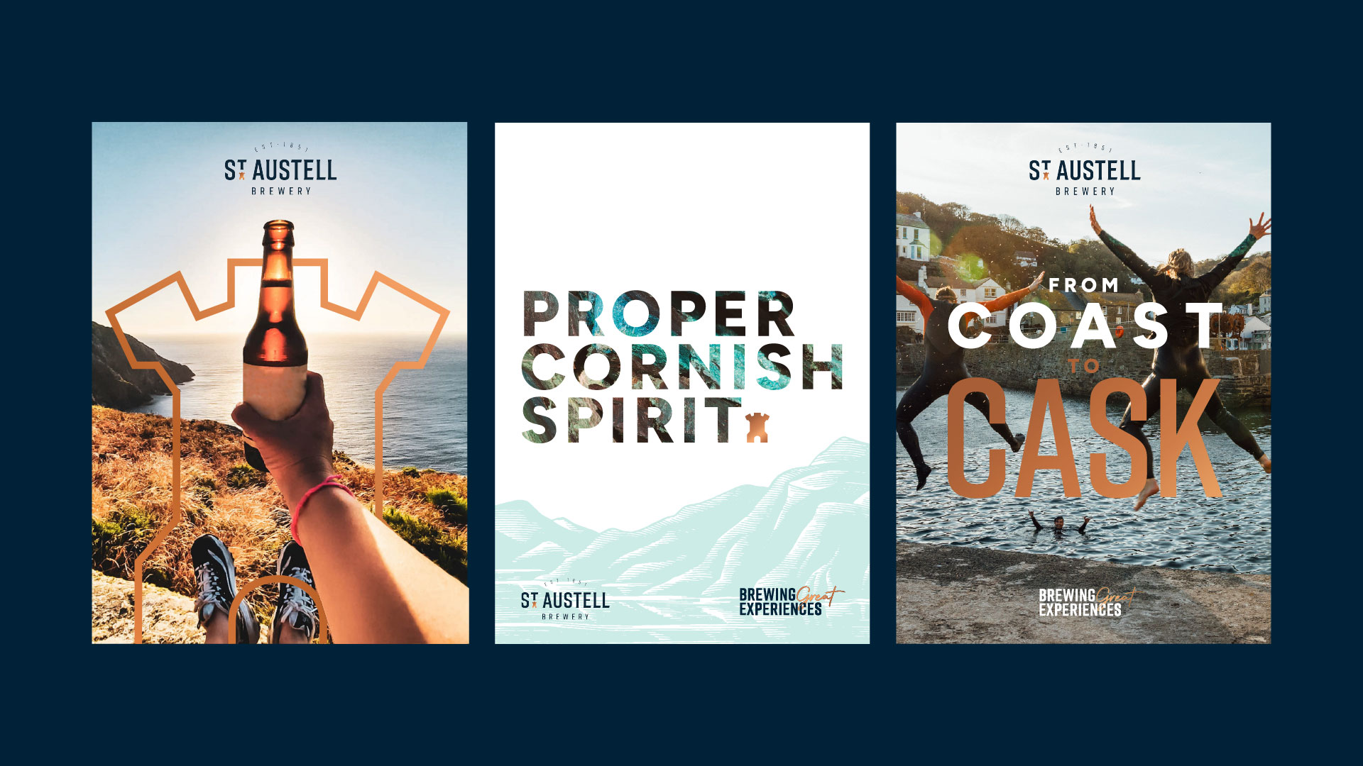 “Brewing Great Experiences for the Generations to Come” became the North star This idea bridges past and future, acknowledging St Austell Brewery’s 170-year legacy whilst positioning the brand as a forward-thinking creator of moments, memories, and connections. The visual refresh was strategic, moving to coastal blues and copper, grounding the brand in place and authenticity, whilst the refined castle asset signals evolution and confidence. The entire system communicates that St Austell Brewery is both rooted and reaching forward.