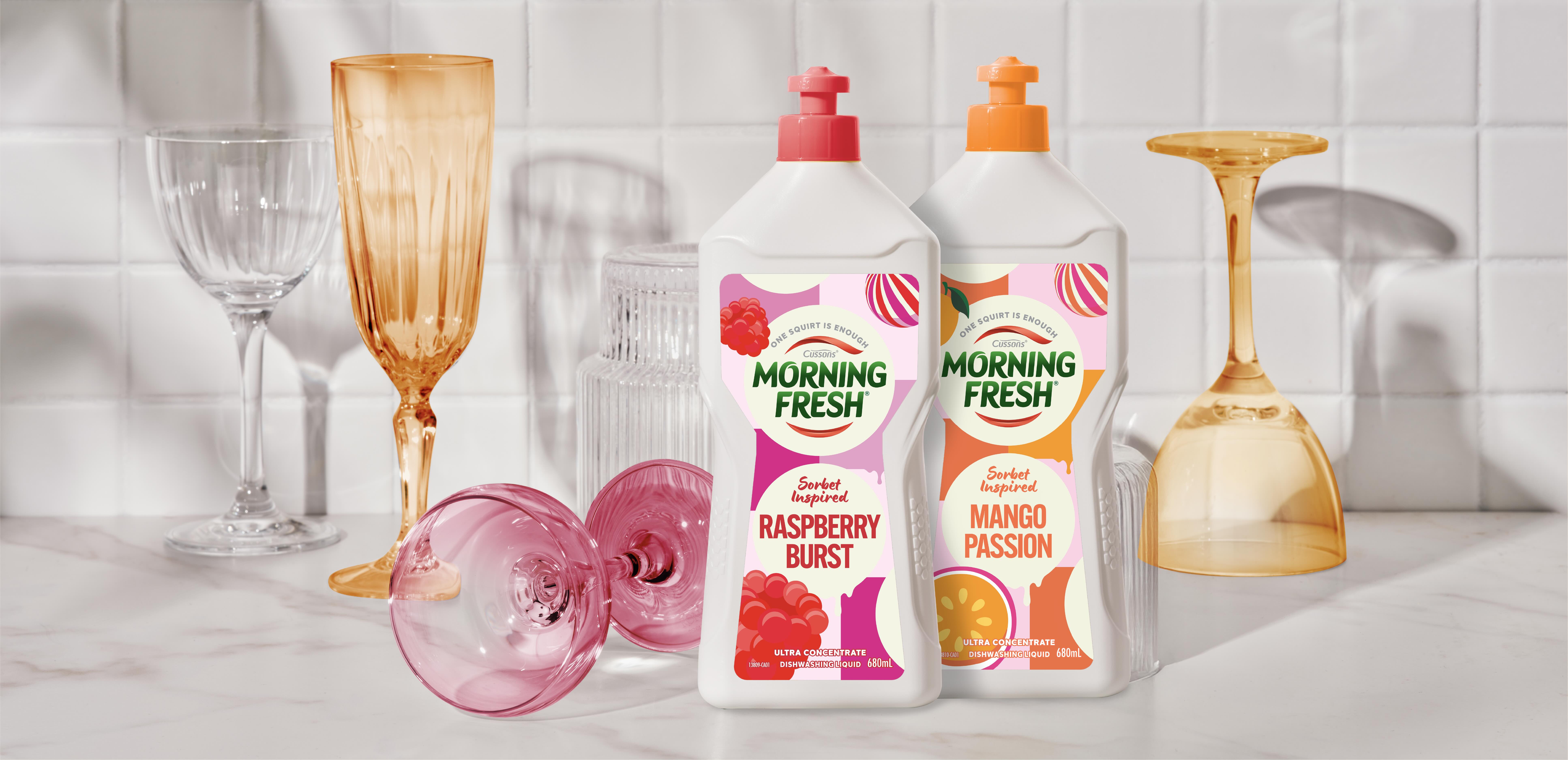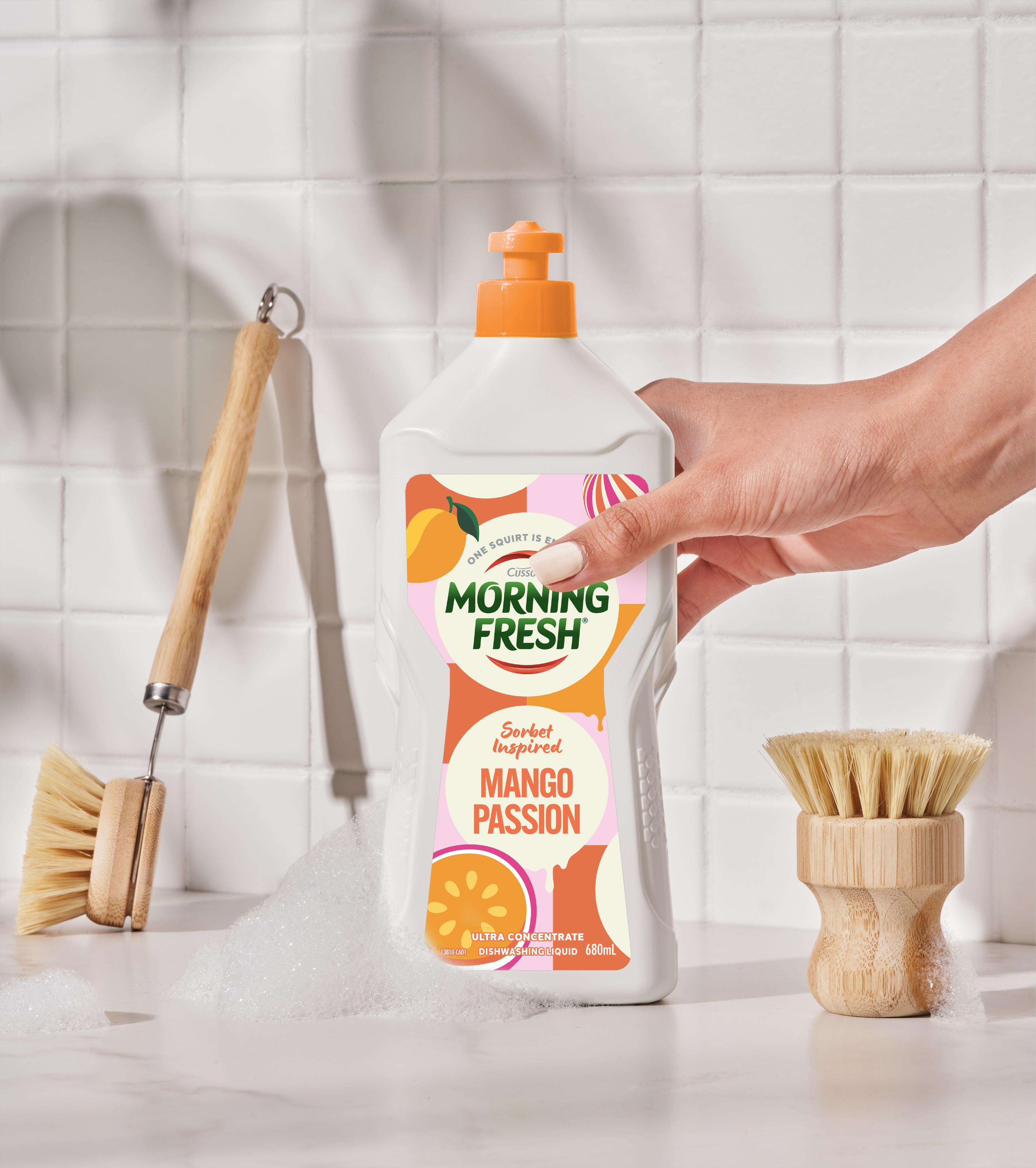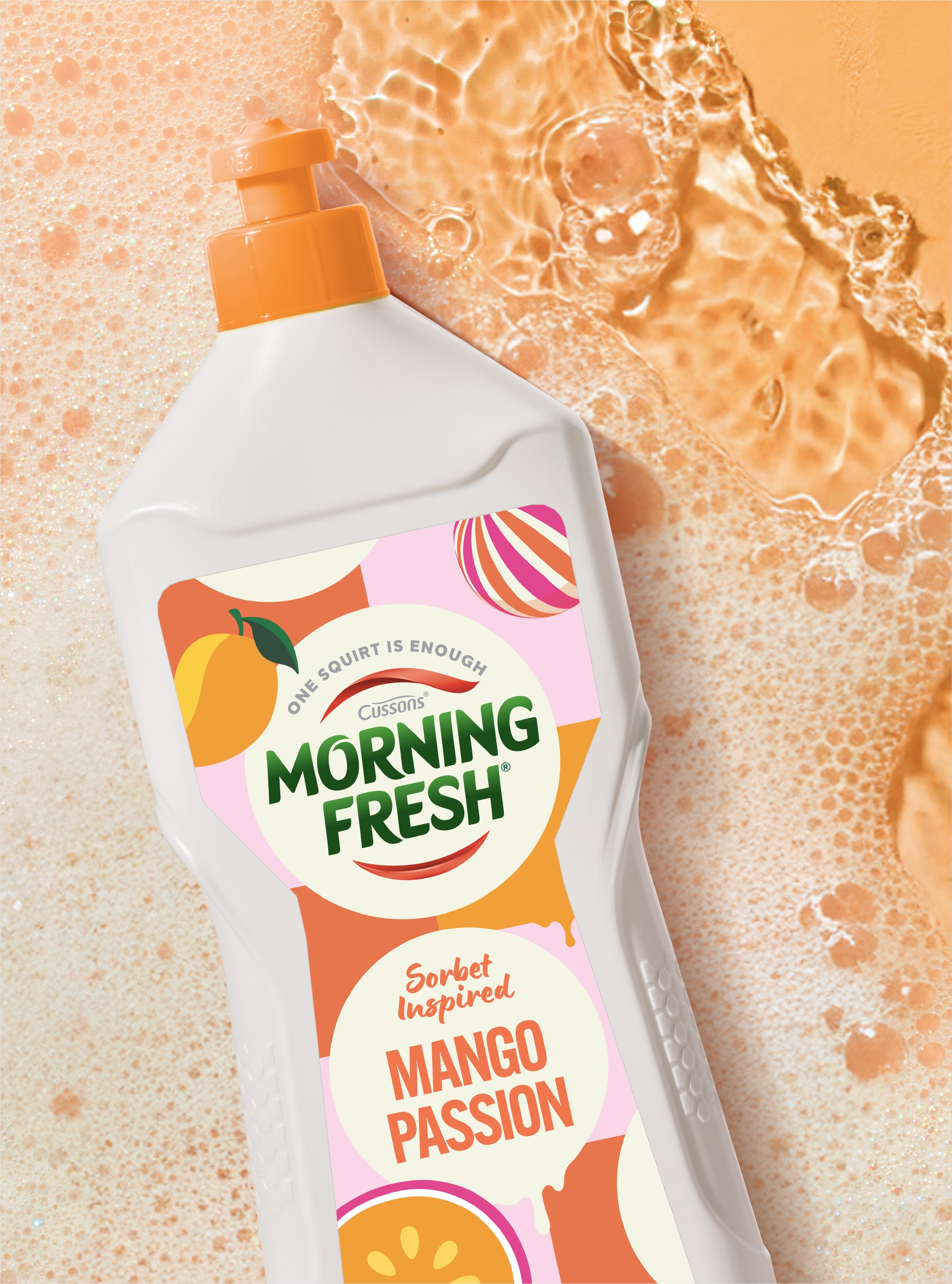 The result was Morning Fresh Sorbet: a summer-inspired limited edition that brings multi-sensory delight to an everyday chore. With vibrant fragrances like Mango Sorbet and Watermelon Sorbet, and a bright, uplifting design system, the range delivers a hit of freshness and fun with every wash.