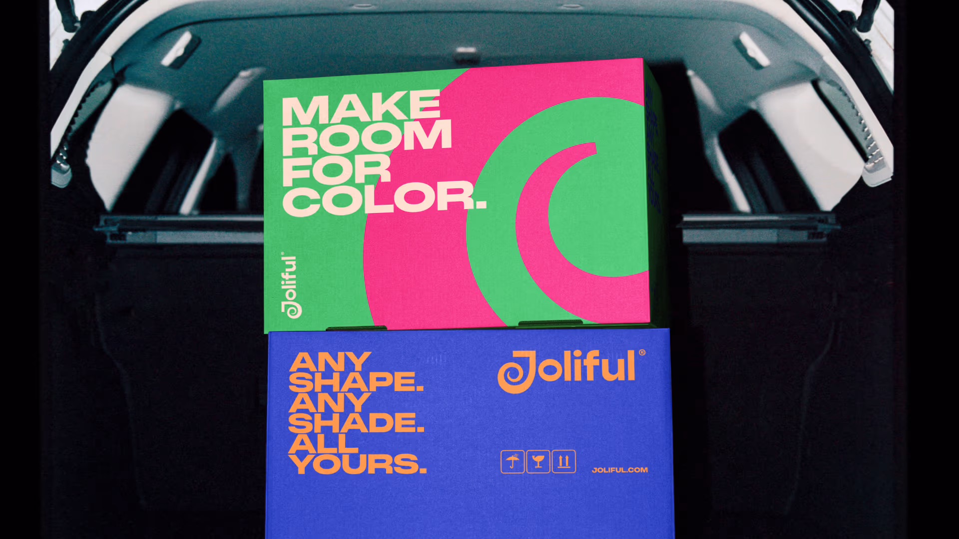 Joliful’s palette is unapologetically loud — purples, neons, sunshine yellows. Every color is designed to spark joy and make the brand impossible to ignore.