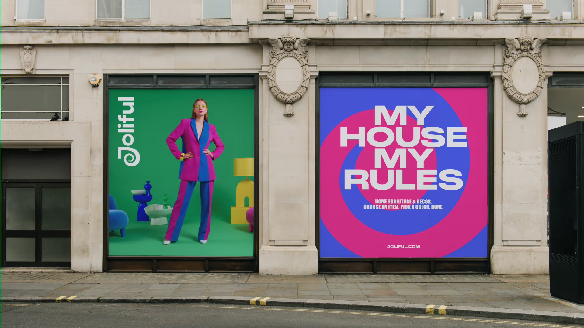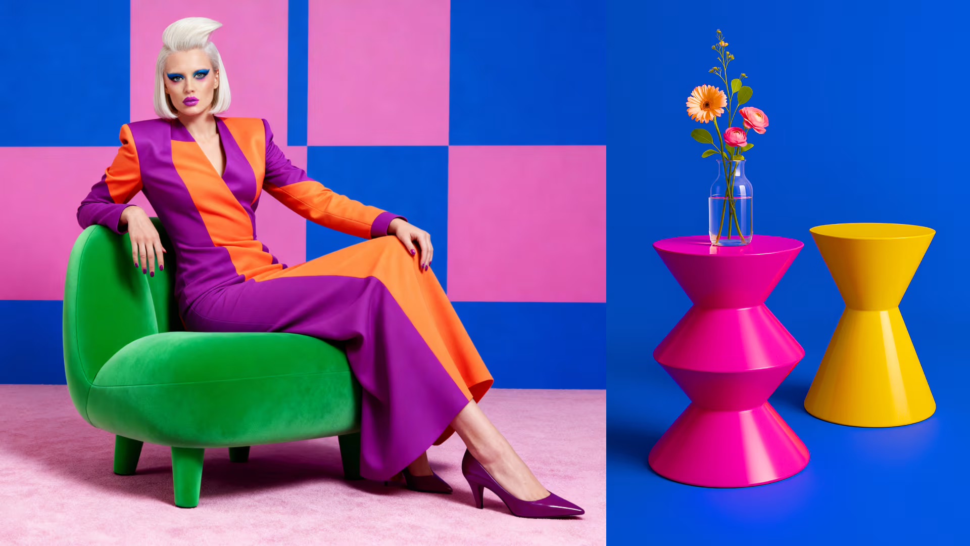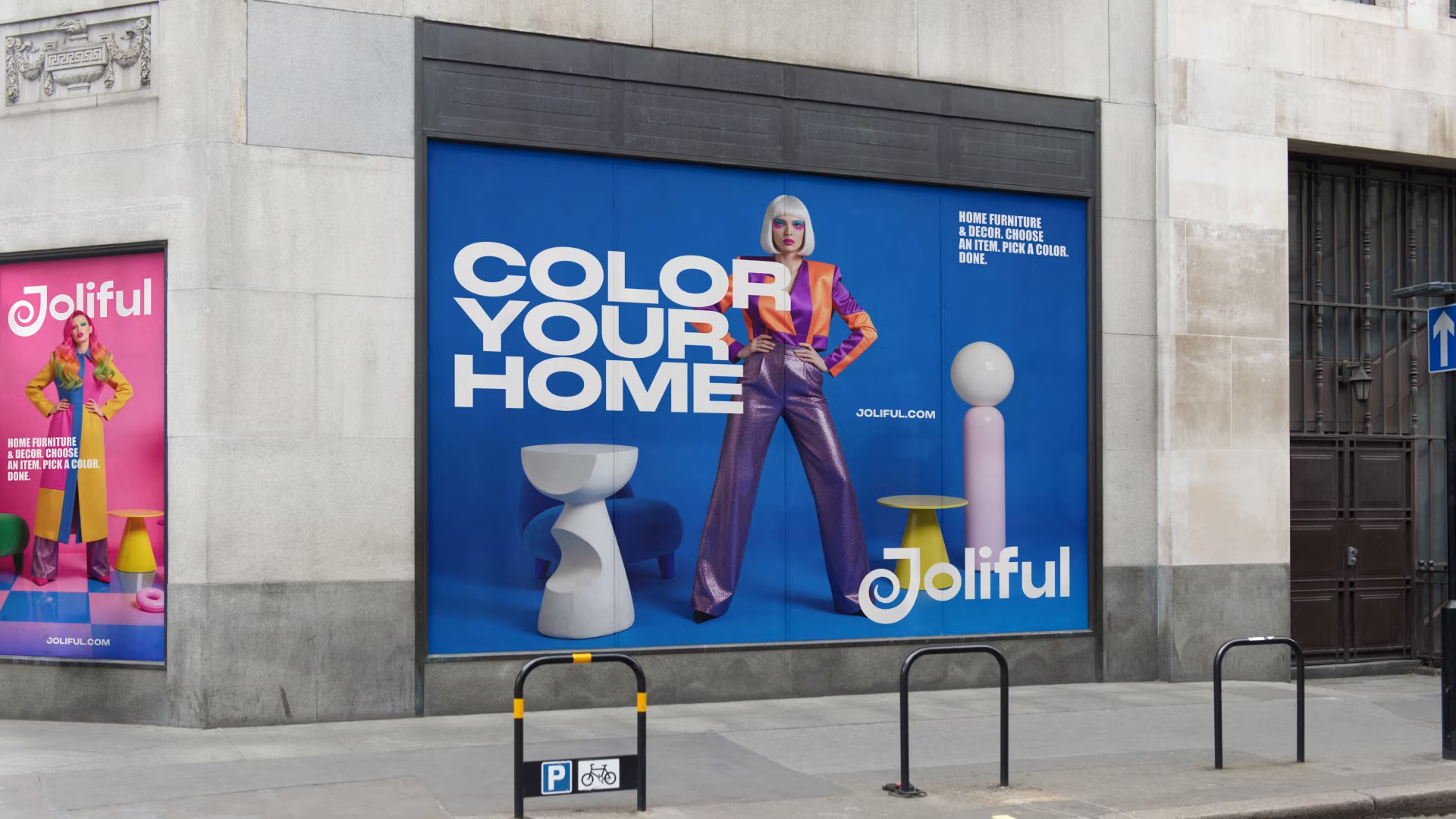 Bold, surrealistic worlds that mix fashion, furniture, and fun. Think dreamlike interiors where everything pops. Joliful creates a stage for self-expression.
