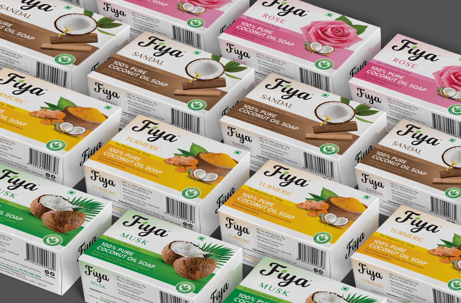 Fiya is a beauty soap brand inspired by the purity of natural ingredients and traditional skincare rituals. The brand focuses on creating gentle, nourishing soaps using organic cold-pressed coconut oil combined with carefully selected natural elements.