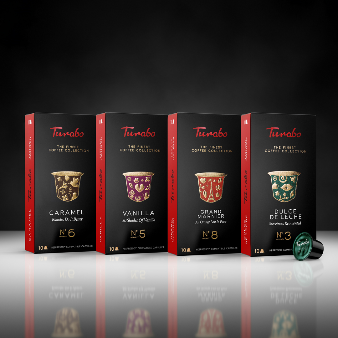 The result is a packaging experience that stands out on shelves and feels unmistakably Turabo: modern, friendly, expressive, and intentionally different from traditional, muted coffee packaging. The whole system is crafted to grow with the brand as new blends, formats, and experiences join the portfolio.