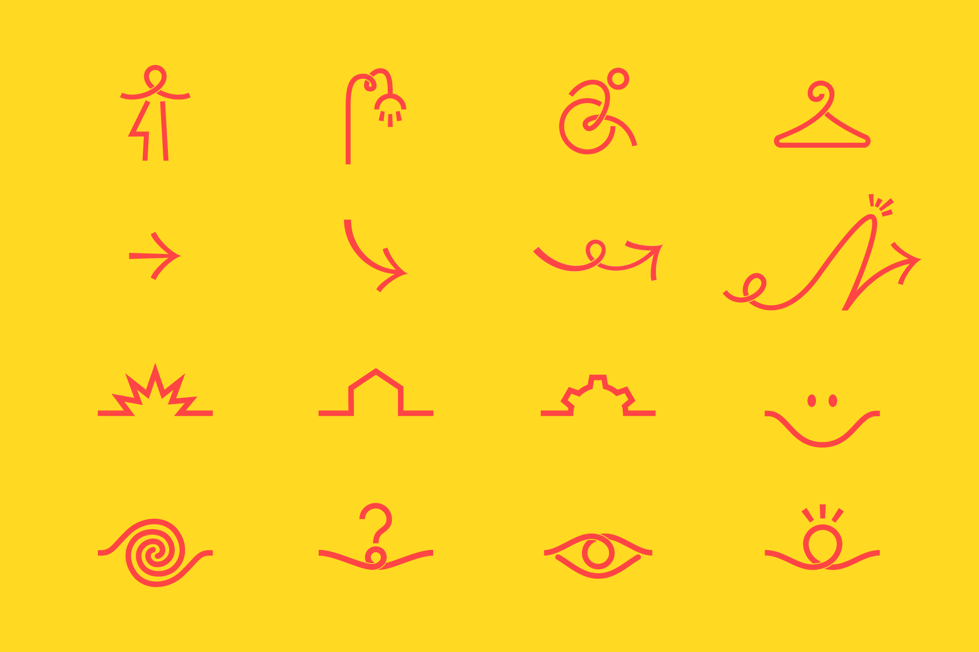 The flowing lines additionally express the many energies of dance—sometimes soft and organic, sometimes sharp and angular. This linework forms a simple, adaptable visual language that extends naturally into signage, iconography, and various digital applications. A bright, powerful color palette reinforces this bold identity, ensuring the brand remains vibrant and recognizable in any context.