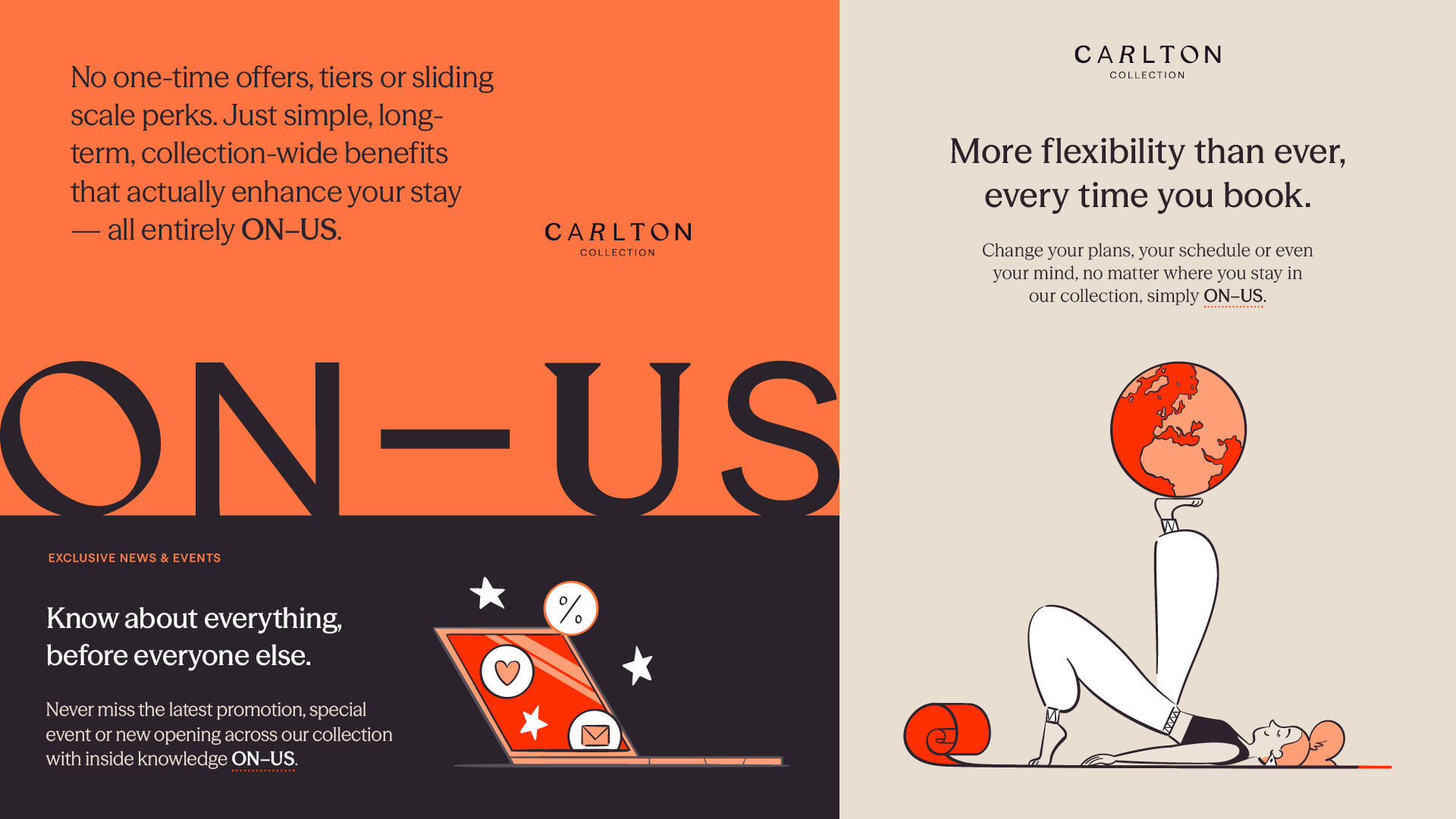 The new Carlton Collection visual identity is rolling out across the collection’s website, with future plans including in-room accents to promote the wider family of destinations.