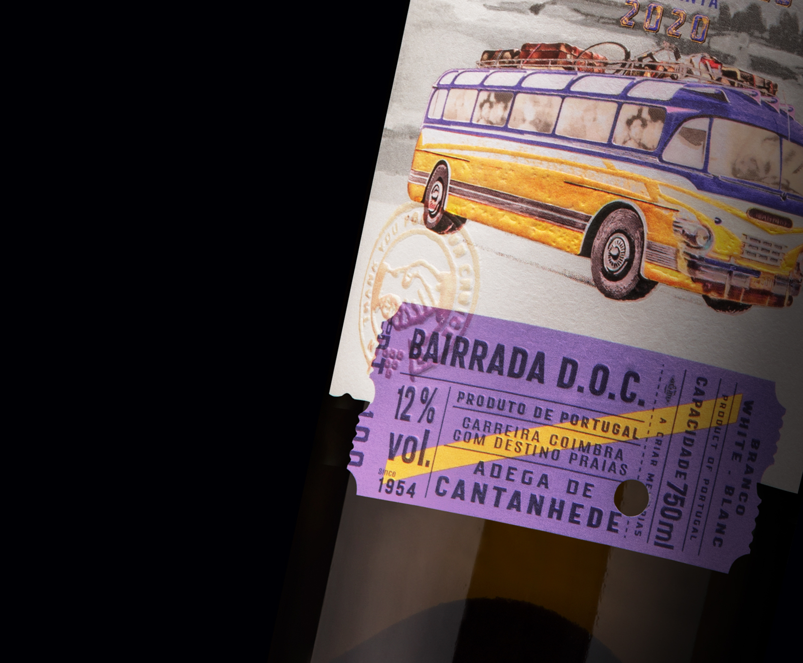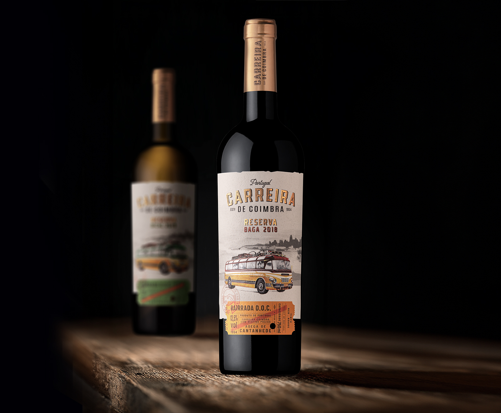 This design project pays homage to that story and to the enduring spirit of connection it represents. The label was created with a modern visual language, yet it carries a touch of nostalgia, a bridge between past and present, much like Carreira de Coimbra itself. Graphic elements inspired by the old travel tickets were reinterpreted and woven into the design, serving as both a visual and symbolic detail. The result is a label that blends memory and innovation, a visual tribute to a means of transport that connected generations and gave its name to a landscape.