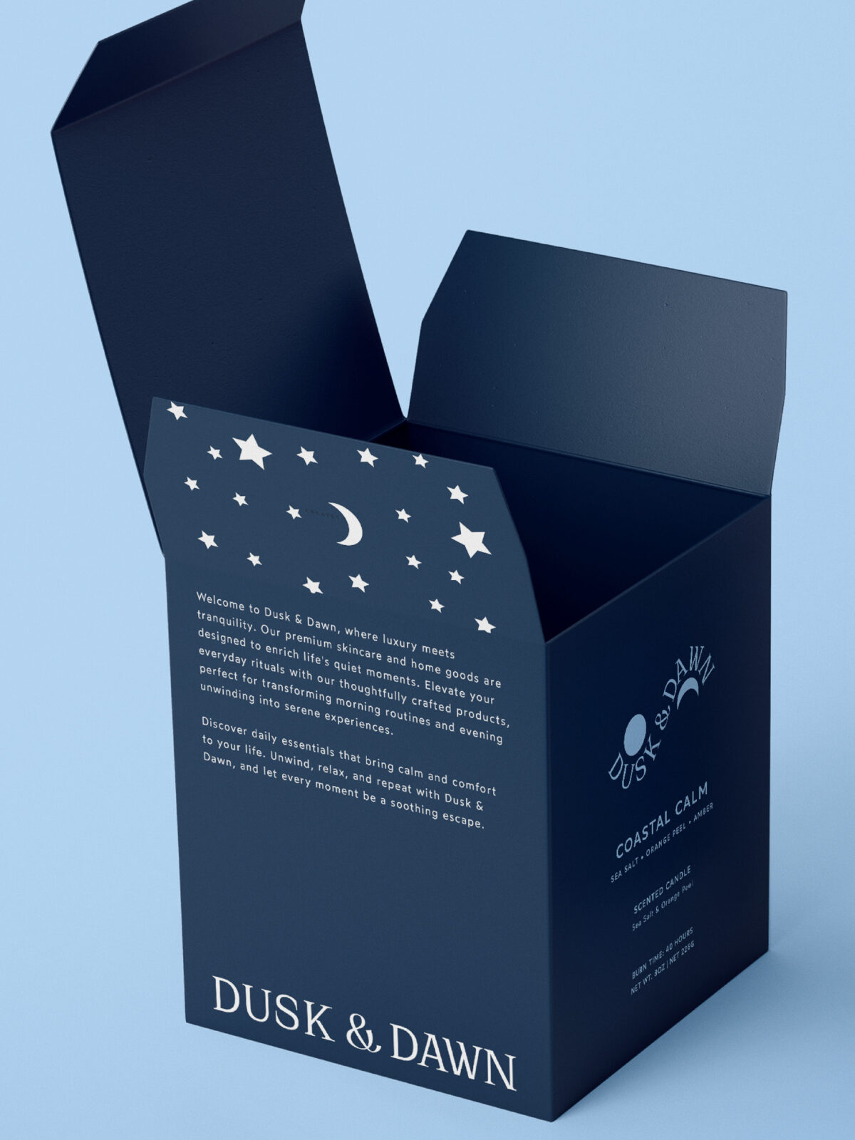 Together, the cohesive visual identity of Dusk and Dawn reinforces the idea of holistic self-care, making each product feel like part of a calming, celestial ritual.