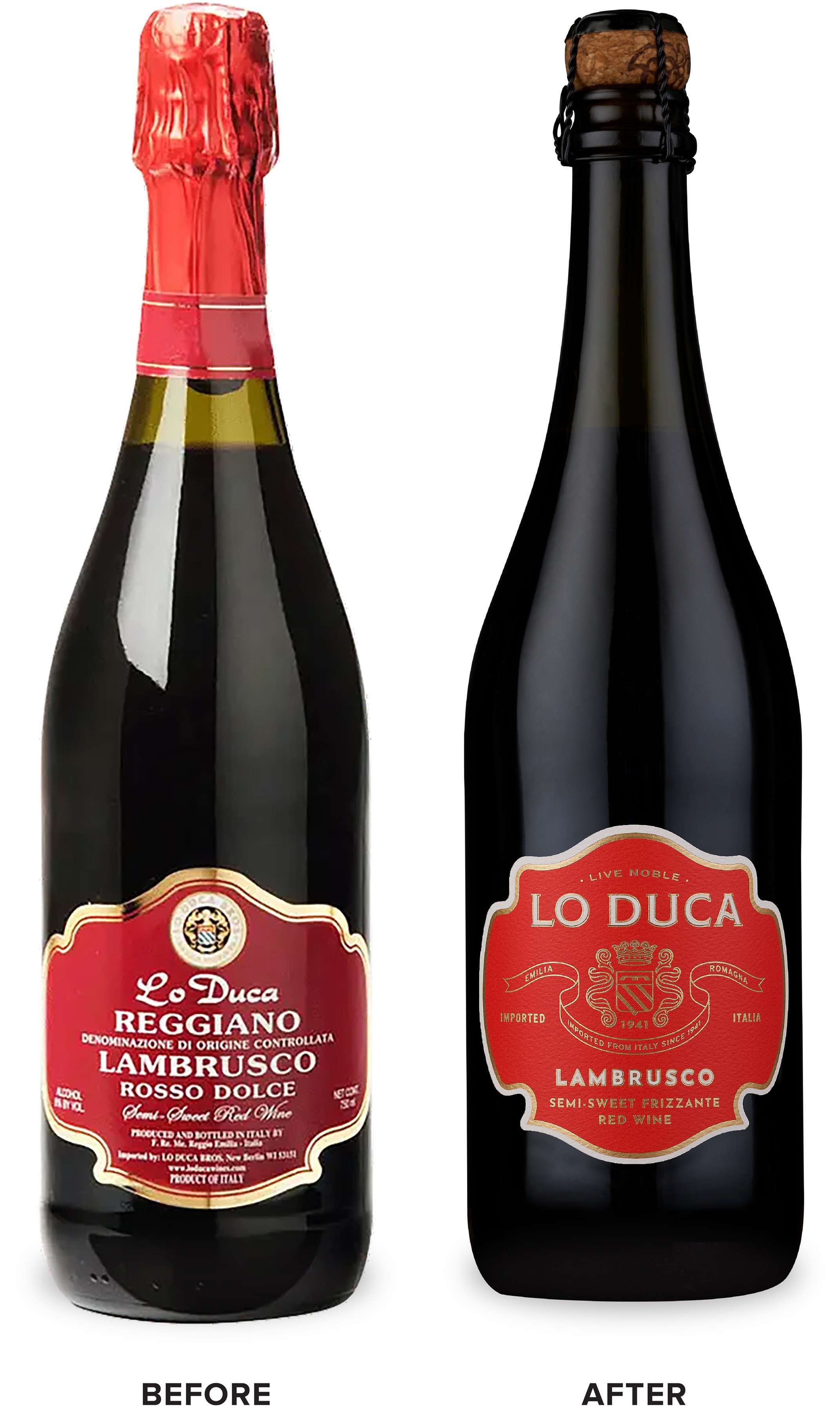 For the packaging redesign, Lo Duca aimed to spread awareness of these lesser-known varietals, engage younger consumers that are excited to try new wines, and upscale the packaging for their classic Italian varietals. We organized these offerings into 2 tiers – a frizzante tier and a still wines tier.