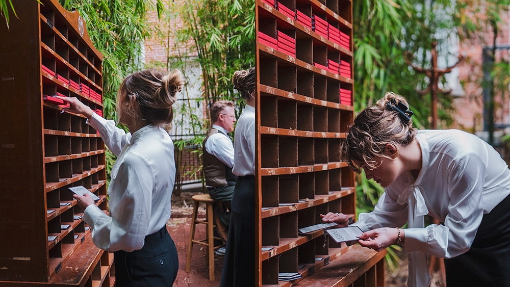 The Ritual of Arrival: Guides against a backdrop of antique mail slots gave each badge a “satisfying thunk” a visual and auditory stamp of arrival.