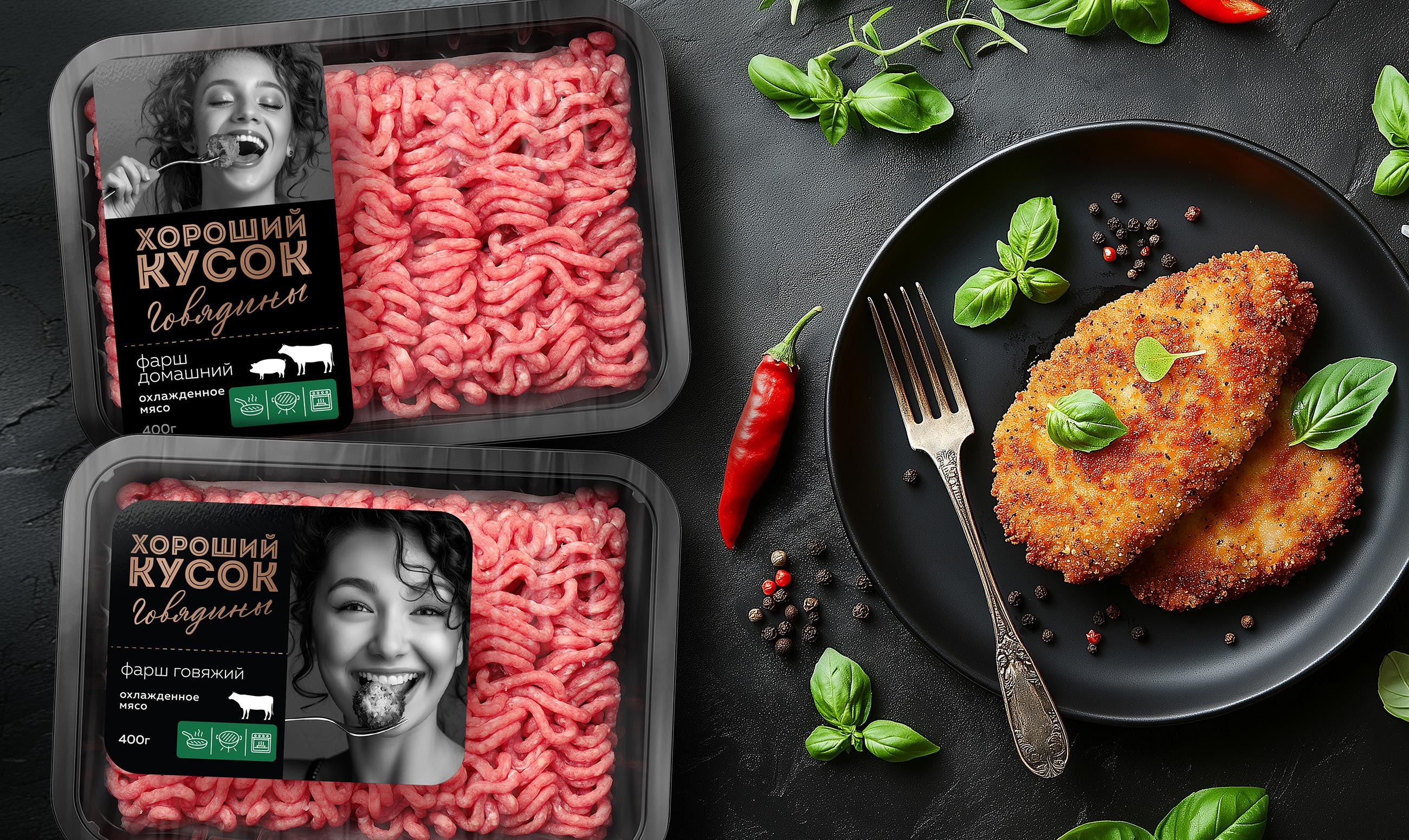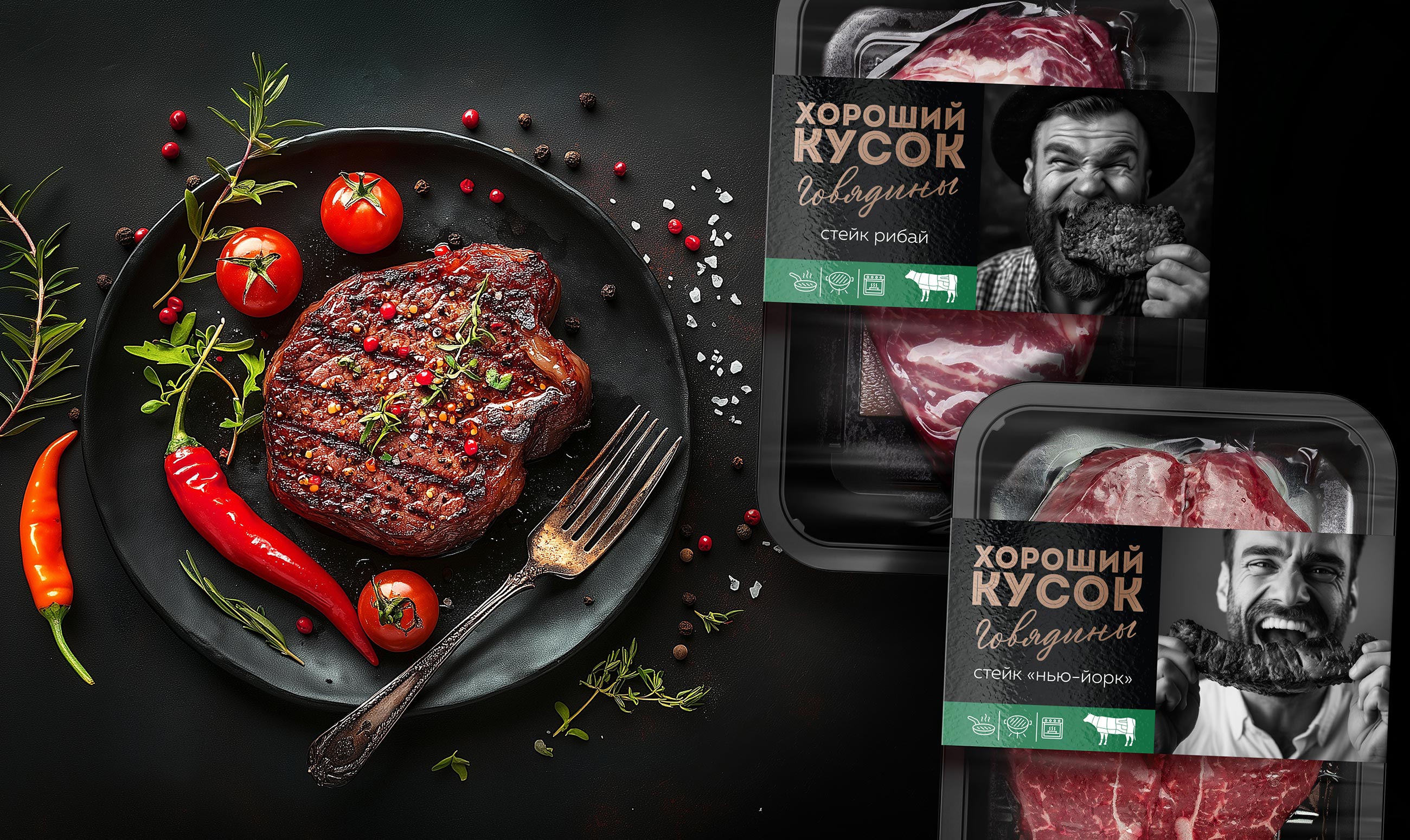 Our task was to create a private label brand of chilled meat that would not only stand out on the shelf but also build a strong emotional connection between the customer, the brand, and the retailer. That’s how “Khoroshiy Kusok” (“A Good Cut”) was born — a brand that is honest, delicious, and memorable, speaking the consumer’s language.