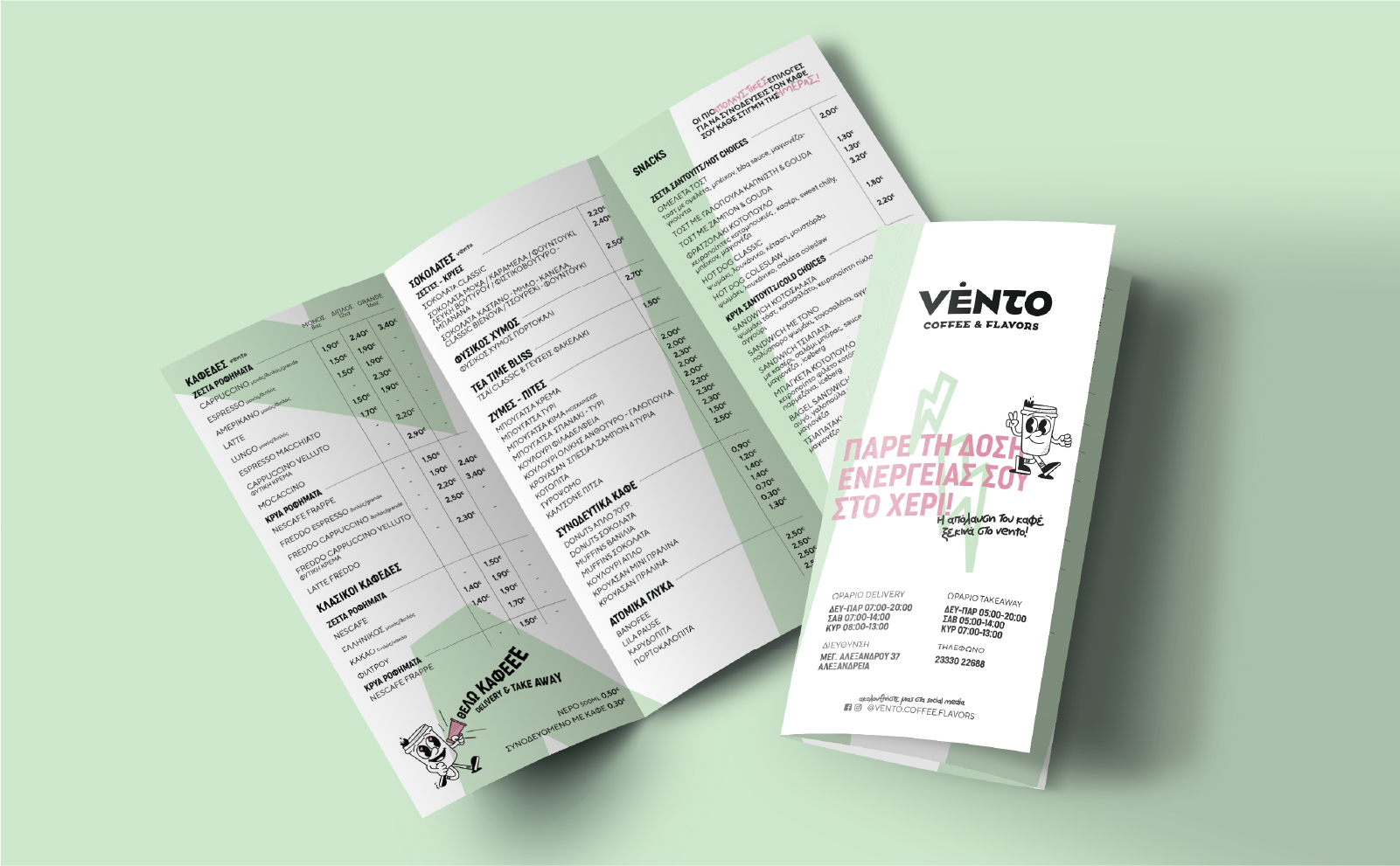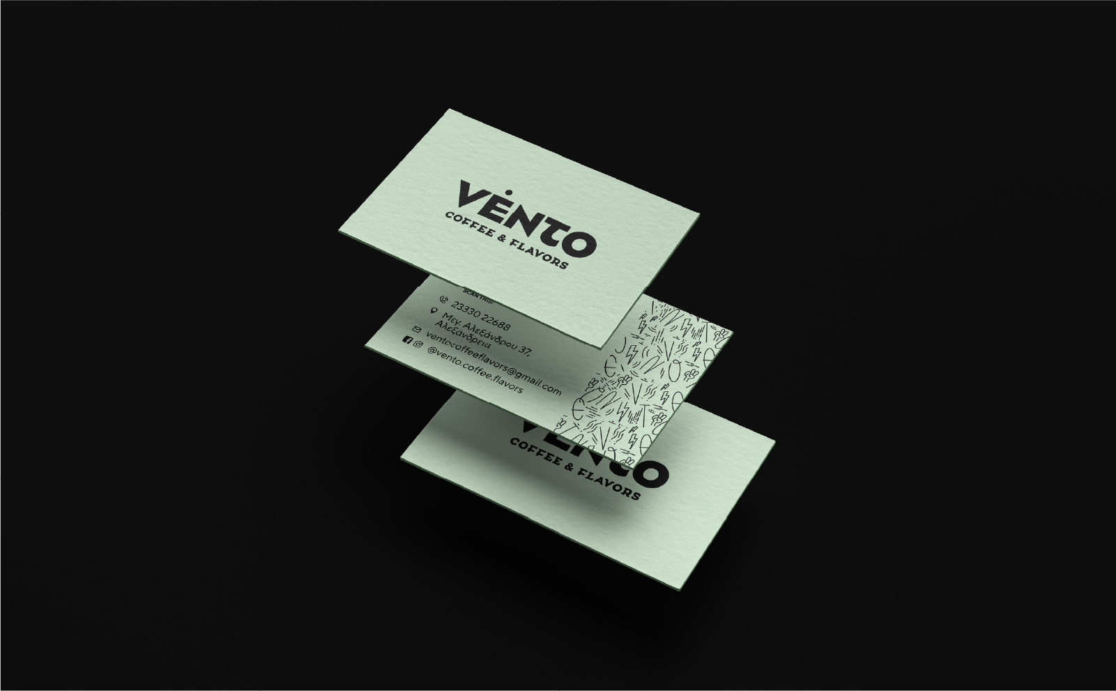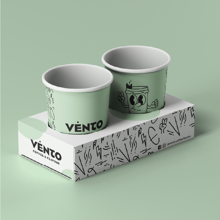 Vento Coffee & Flavors is a contemporary coffee brand that conveys energy, freshness, and a youthful spirit. The name “Vento” (meaning wind) symbolizes movement, vitality, and flow — elements that strongly connect with the daily coffee ritual and the fast-paced rhythm of modern urban life. The concept draws inspiration from the idea that coffee accompanies people during their most active moments: commuting, working, socializing, and creating.
