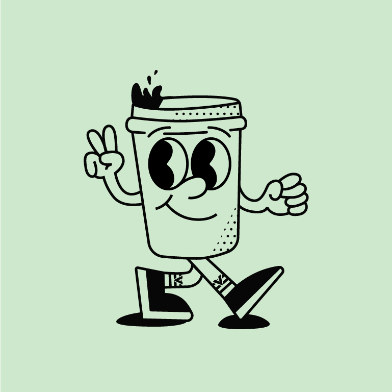 The brand identity is centered on the concept of “energy in your hand.” Coffee is more than just a drink; it represents rhythm, mood, and motivation. For this reason, a playful mascot character — a coffee cup figure — was created to personify the vibrant personality of the brand. This character functions as a key visual element, appearing consistently across multiple brand applications and helping the brand feel more approachable, lively, and memorable. Through expressive poses and dynamic movement, the mascot communicates the uplifting feeling that a good cup of coffee can bring.