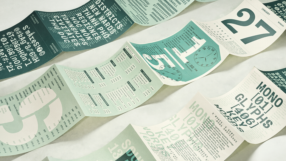 Choosing Monospace as our foundation because it perfectly symbolizes the shift from handwriting to the typewriter – representing a crucial moment where different ideas collide to fuel innovation. From this base, a set of alternate glyphs was developed by blending sharp Stencil and Brutalist Shapes, calculated to align with the overall concept’s rhythm. To maintain a distinctive look without sacrificing readability, these alternate glyphs are used judiciously to balance the text’s functional legibility with a memorable brand identity.